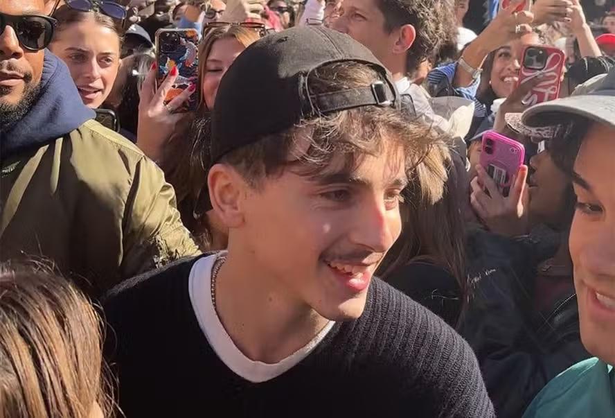 Com o alvoroço que a chegada de Timothée causou, policiais chegaram a algemar pelo menos um dos sósias de Chalamet, enquanto uma multidão gritava para que o fã fosse solto. Apesar do contratempo, o artista ainda conseguiu posar para fotos e atender muitos dos fãs presentes.