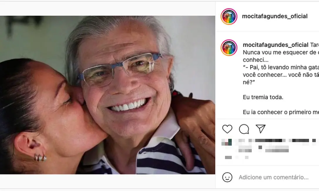 Ainda na legenda, Mocita revelou momentos importantes ao lado do artista. Segundo ela, um dos mais marcantes teria sido a primeira vez que o conheceu no ambiente familiar.
