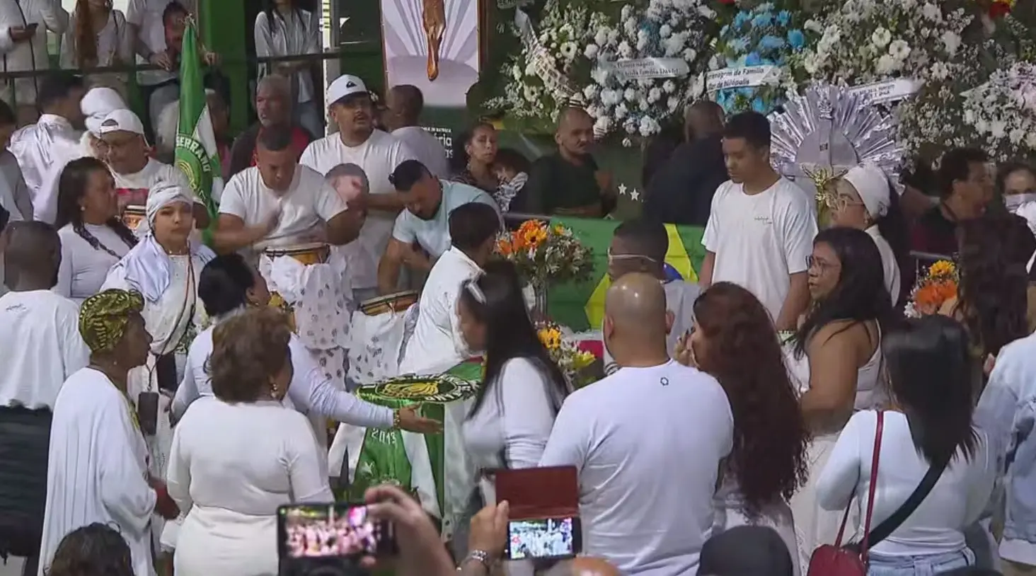Visitantes do velório, incluindo familiares, amigos e fãs do sambista, compareceram à quadra da escola trajados em roupas claras, seguindo a tradição das religiões de matrizes africanas.