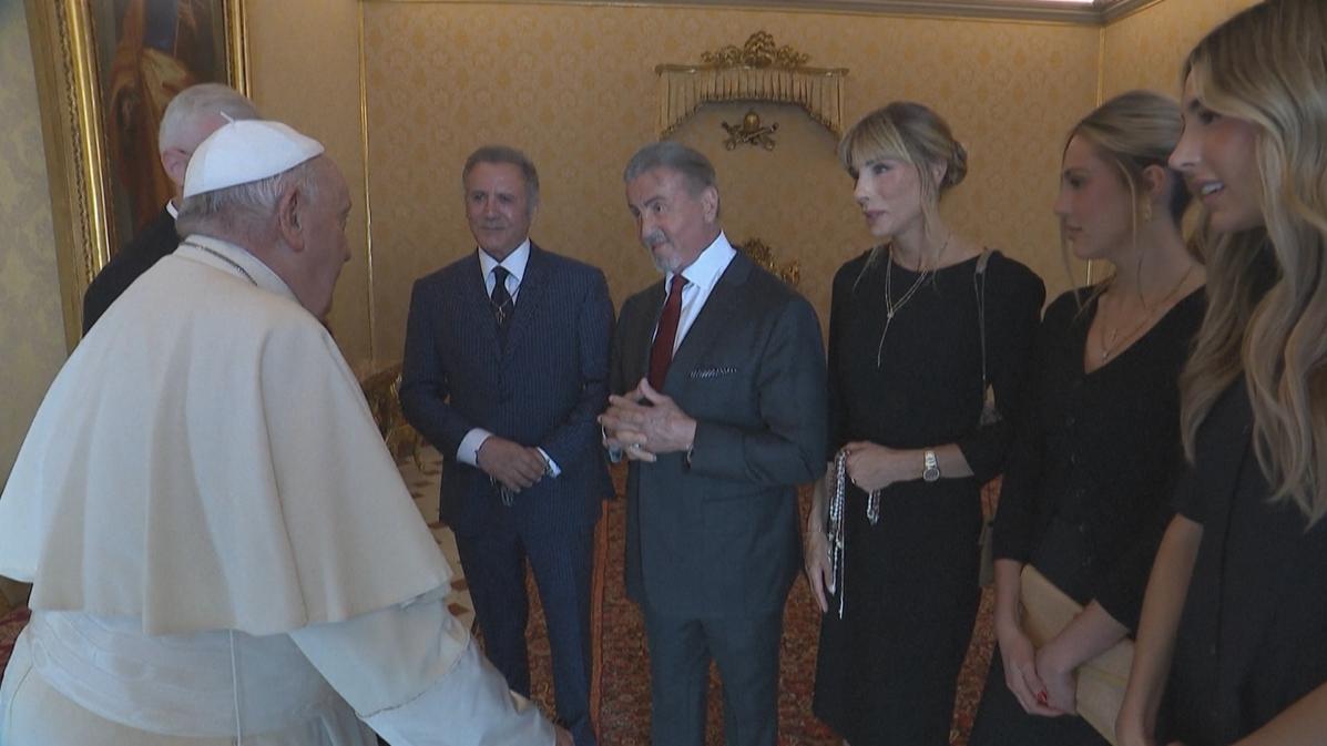 Vídeo que circula nas redes sociais mostra encontro de Sylvester Stallone e papa Francisco