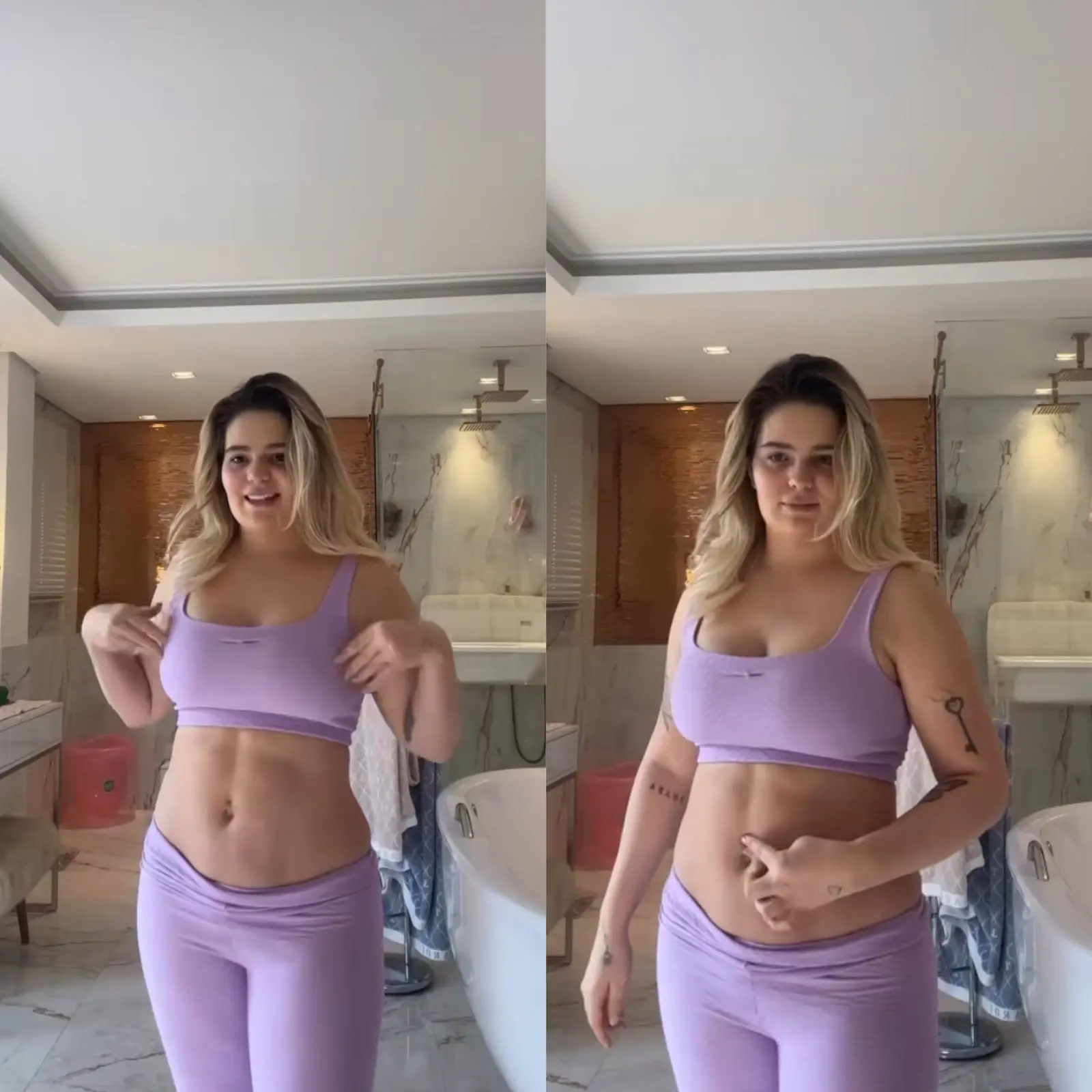 “Gente, acho que estou emagrecendo. Isso aqui é diástase, que estou com 2 ou 3 centímetros”, iniciou ela.