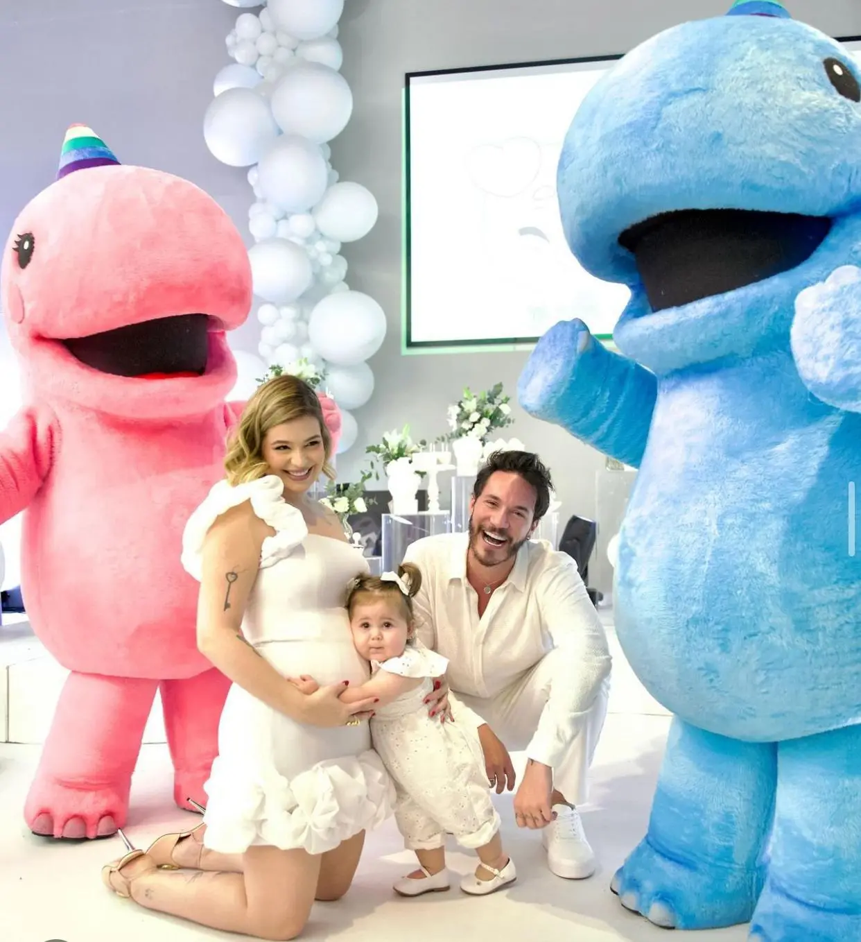 O casal estava acompanhado de Lua e os personagens de seu mais novo vídeo infantil. Eles colocaram vários balões com opções de nomes e foram estourando até ficar o nome escolhido. Entre as opções do video estavam Sol, Noah e Luan. Lua, de 1 ano, apareceu no vídeo usando uma blusa branca com sol bordado dourado.