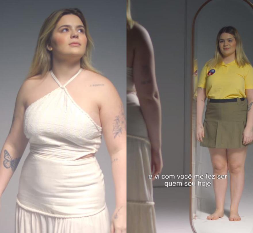 Na filmagem publicada nas redes sociais, Viih Tube veste roupas antigas, cada uma com um momento diferente em sua vida, e olha, através de um espelho, para todos os momentos vividos.