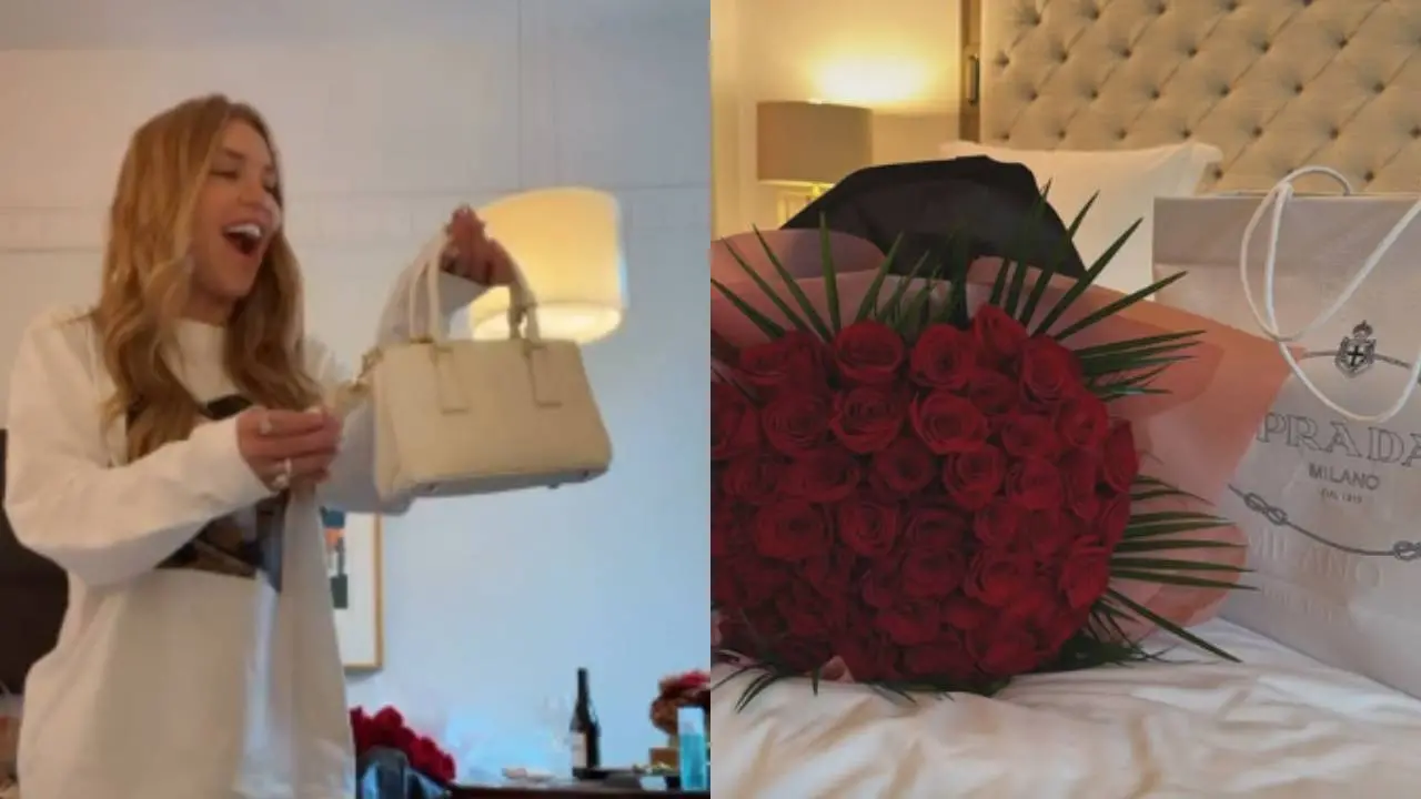 Virgínia retorna a Madri e é recebida por Vini Jr. com flores e uma bolsa de luxo