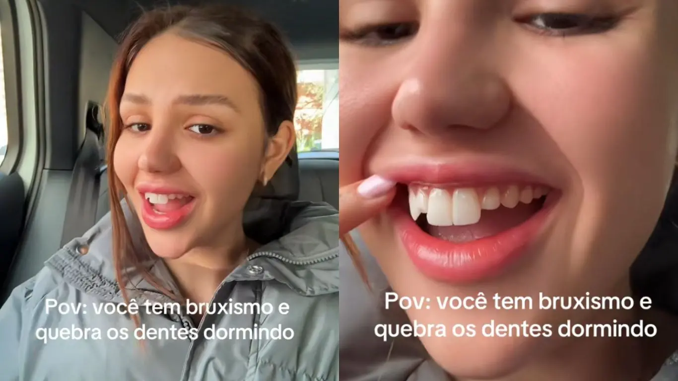 A influenciadora Vivi Wanderley chamou atenção dos seguidores ao publicar um vídeo em que mostra o estado dos dentes após quebrar algumas lentes por causa do bruxismo, distúrbio que causa o apertar ou ranger involuntário dos dentes, principalmente durante o sono.