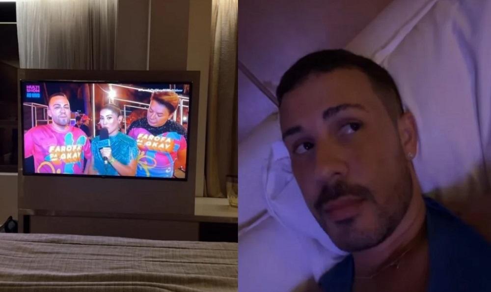 Carlinhos ainda mostrou Lucas dormindo ao seu lado, e mais uma vez se declarou: “Não adianta, sou arriado os quatro pneus por esse homem. Estou aqui pastorando”.