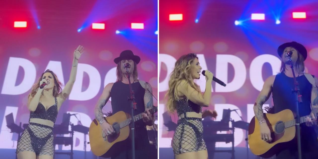 Wanessa e Dado Dolabella se beijam durante apresentação da cantora em São Paulo