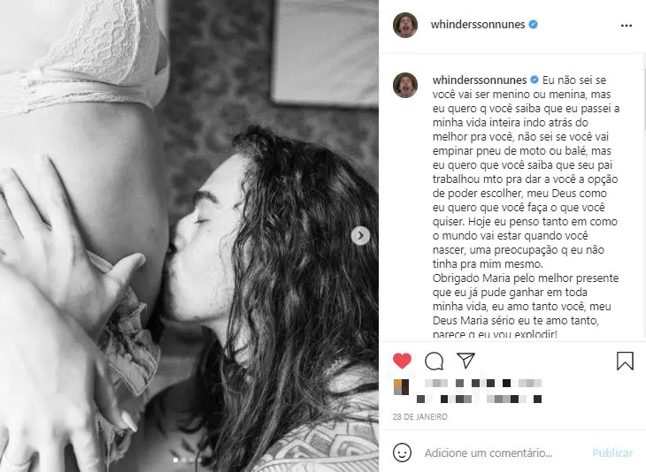 Foi nas redes, inclusive, onde ele fez o anúncio da gestação. Ainda em janeiro deste ano, o artista publicou as primeiras imagens de Maria grávida e definiu o momento como o melhor já vivido por ele até então.