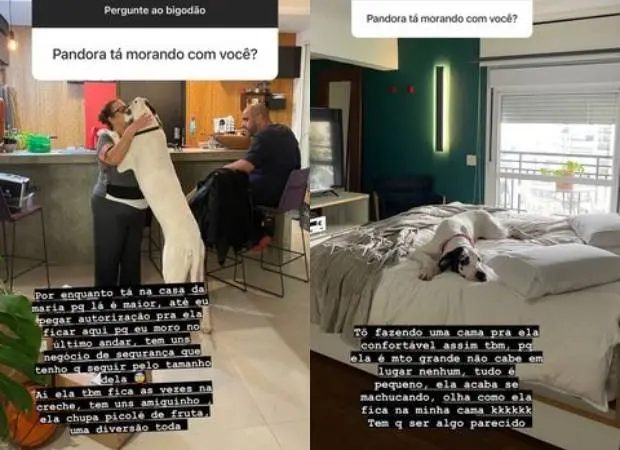 Além disso, o humorista explicou da mudança do espaço para receber uma de suas cachorras, a Pandora. Por enquanto, ele revelou, o animal segue na casa de Maria.