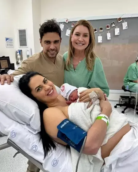 A imagem da bebê com os pais foi compartilhada pela pediatra Lilian Zaboto, que também aparece na foto, em suas redes sociais.