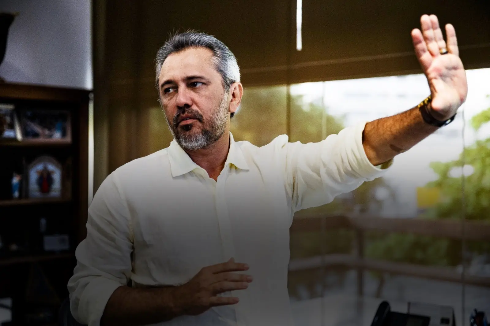 A declaração do petista foi dada em entrevista ao Diário do Nordeste, na última segunda-feira (11), em seu gabinete, no Palácio da Abolição, em Fortaleza. Na ocasião, Elmano de Freitas recebeu a equipe pouco depois das 14 horas, numa extensa mesa de reuniões, com pelo menos dois assessores, para uma entrevista com pouco mais de uma hora de duração. O petista também falou sobre a fila de espera por cirurgias eletivas, que ele acompanha online em uma grande tela à frente da mesa; de alguns presentes que recebeu, apontando para imagens de São Francisco e Nossa Senhora, um maracá indígena e se emocionou ao mostrar a foto de seu pai, falecido exatamente no dia em que o petista foi oficialmente escolhido para ser o candidato ao governo do Ceará.