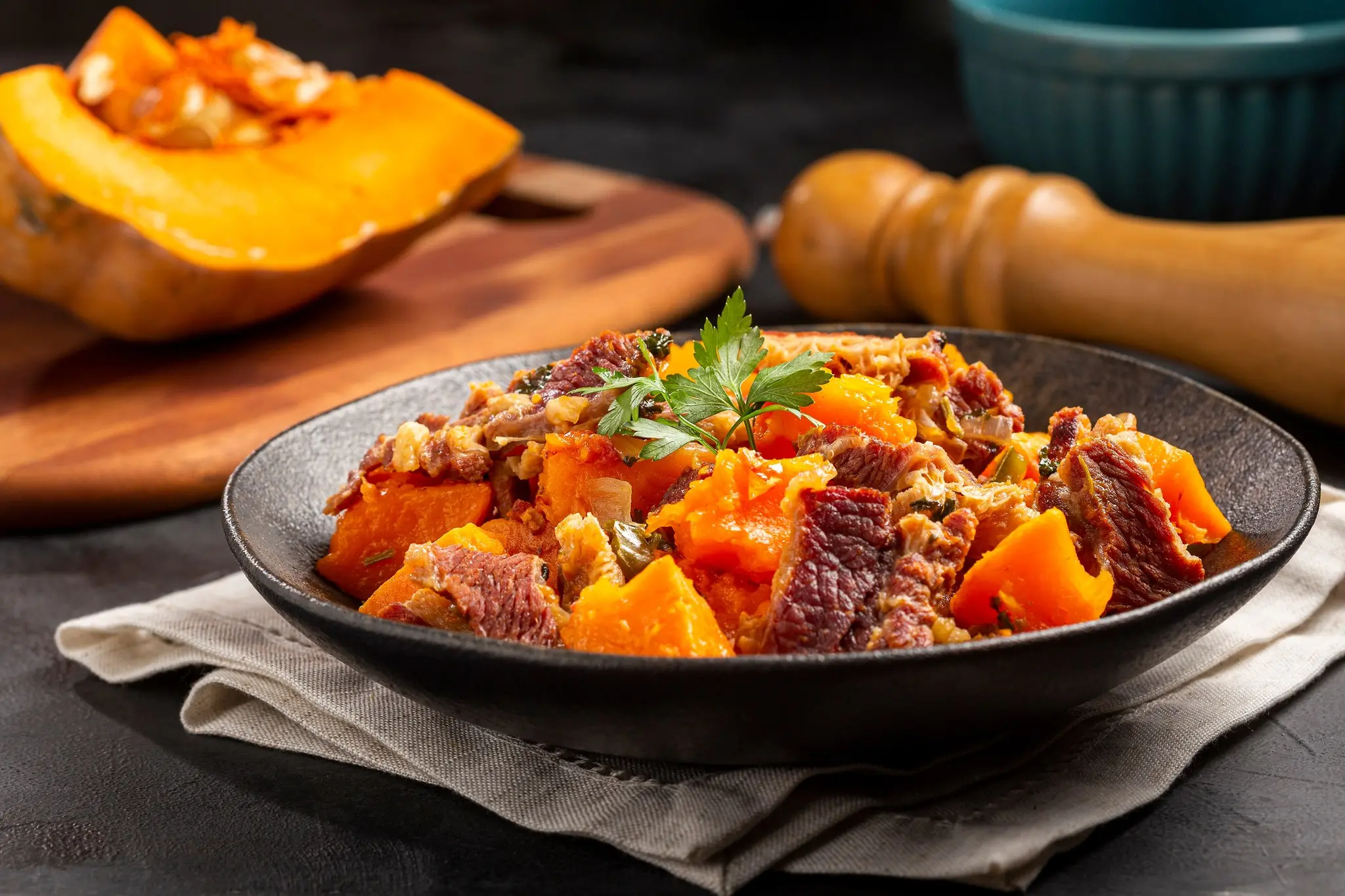 A carne seca com abóbora é um prato que junta dois ingredientes populares na culinária nordestina: a carne seca e a abóbora, também conhecida como jerimum.