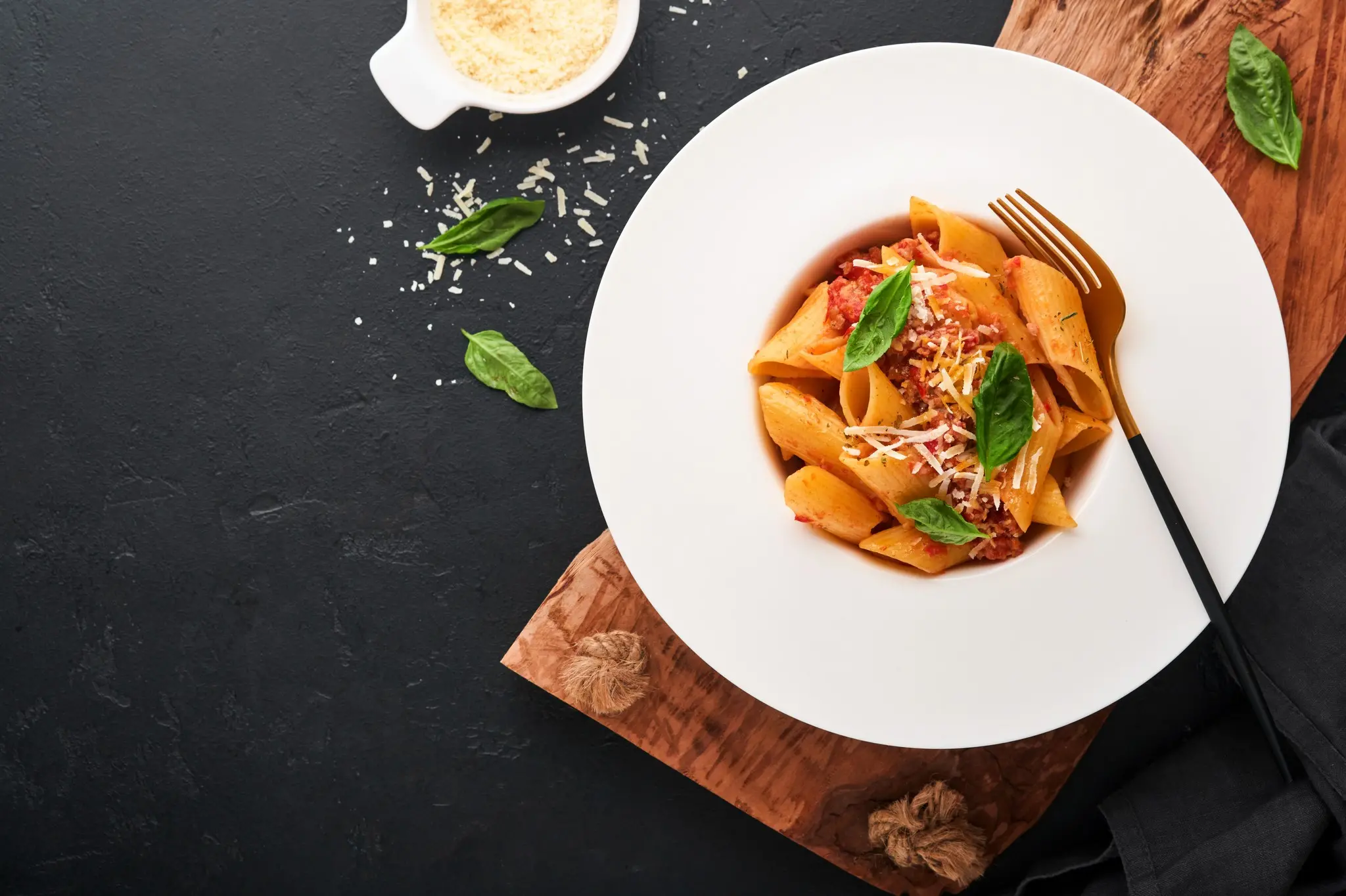 Ao finalizar o preparo, salpique as folhas de manjericão e polvilhe o queijo ralado sobre o prato