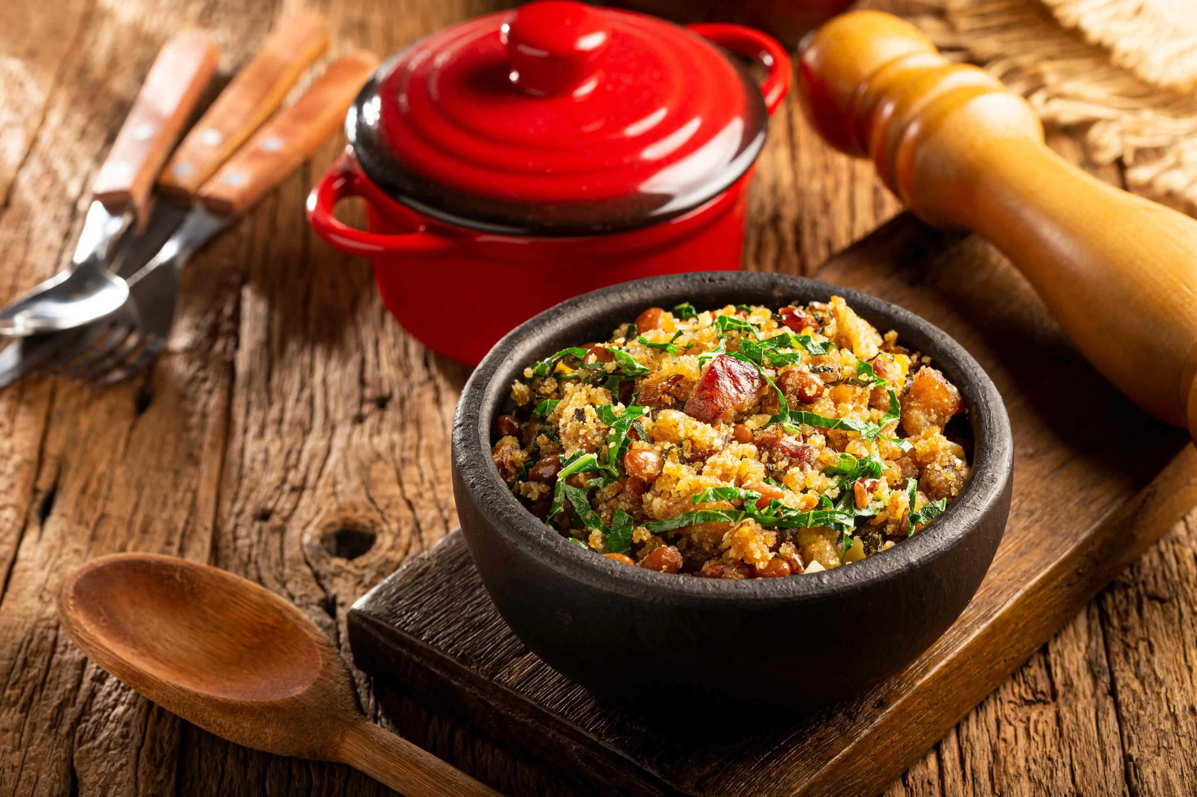 Esse prato é preparado com alho picado, farinha de mandioca, bacon e cebola picada. A receita é prática e rápida, sendo uma deliciosa opção de acompanhamento.
