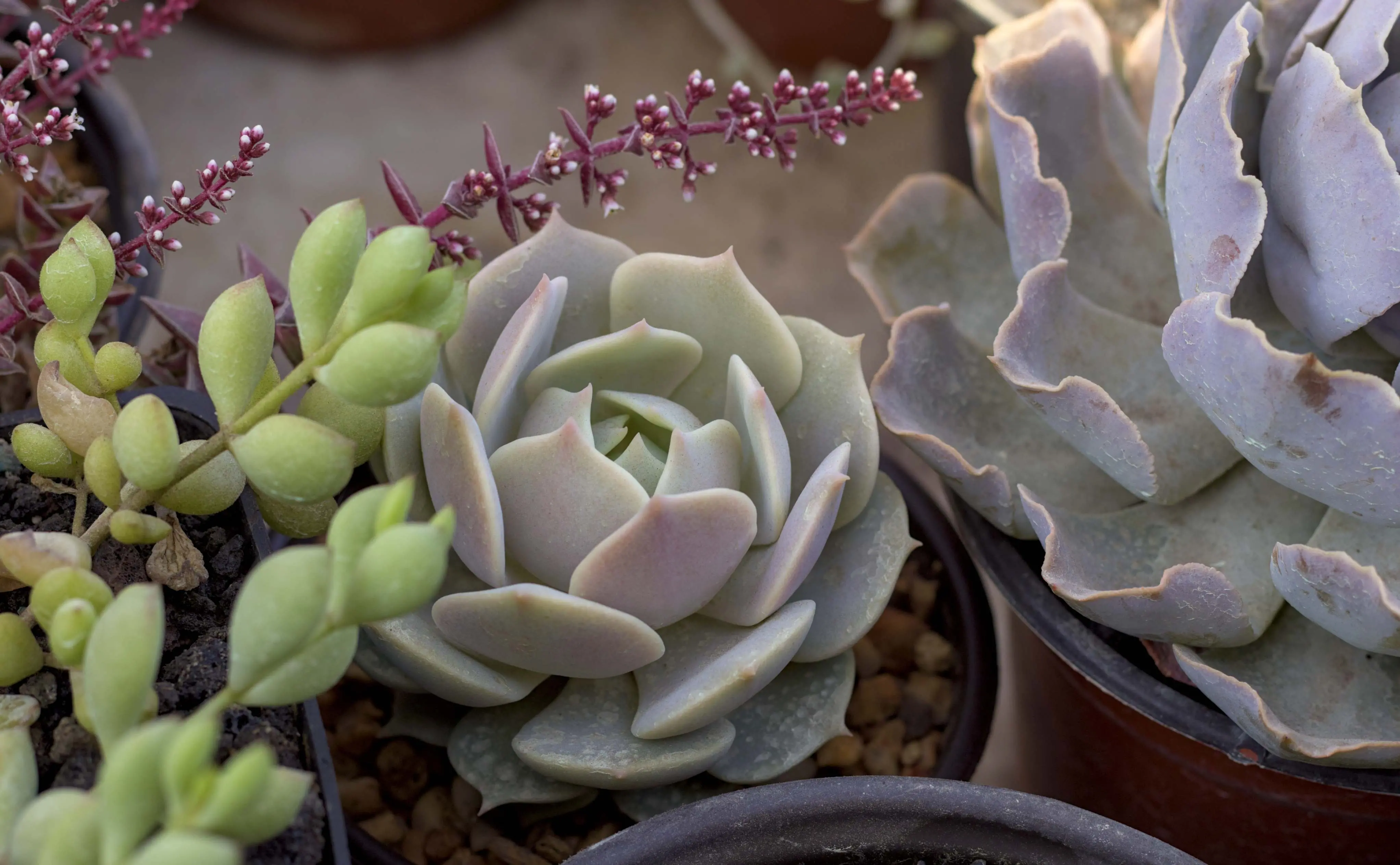 No Brasil, existem três espécies de echevéria roxa (rosa-de-pedra-roxa) sendo cultivadas, segundo o especialista. Dentre elas, estão: