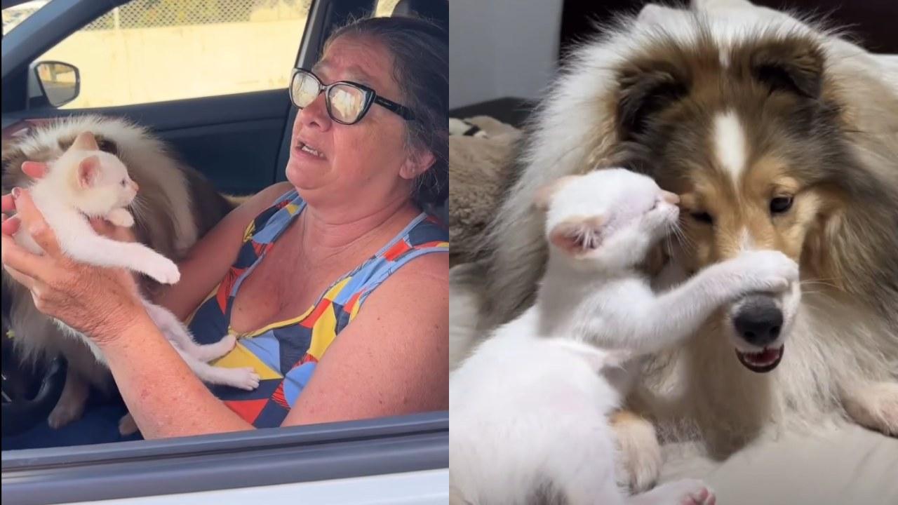 Filhote de gato viraliza ao ser 'adotado' por cachorrinhas em SP: 'Inseparáveis'; assista