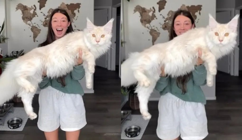 A influenciadora Chastity Hobbs, 26 anos, compartilhou a rotina do gato "Kusa", de 9 meses de idade, surpreendendo internautas com o tamanho do felino, grande como uma criança de cinco anos. Conforme o Metrópoles, o animal da raça Maine Coon pesa mais de 7 kg e foi adotado quando tinha três meses de idade.