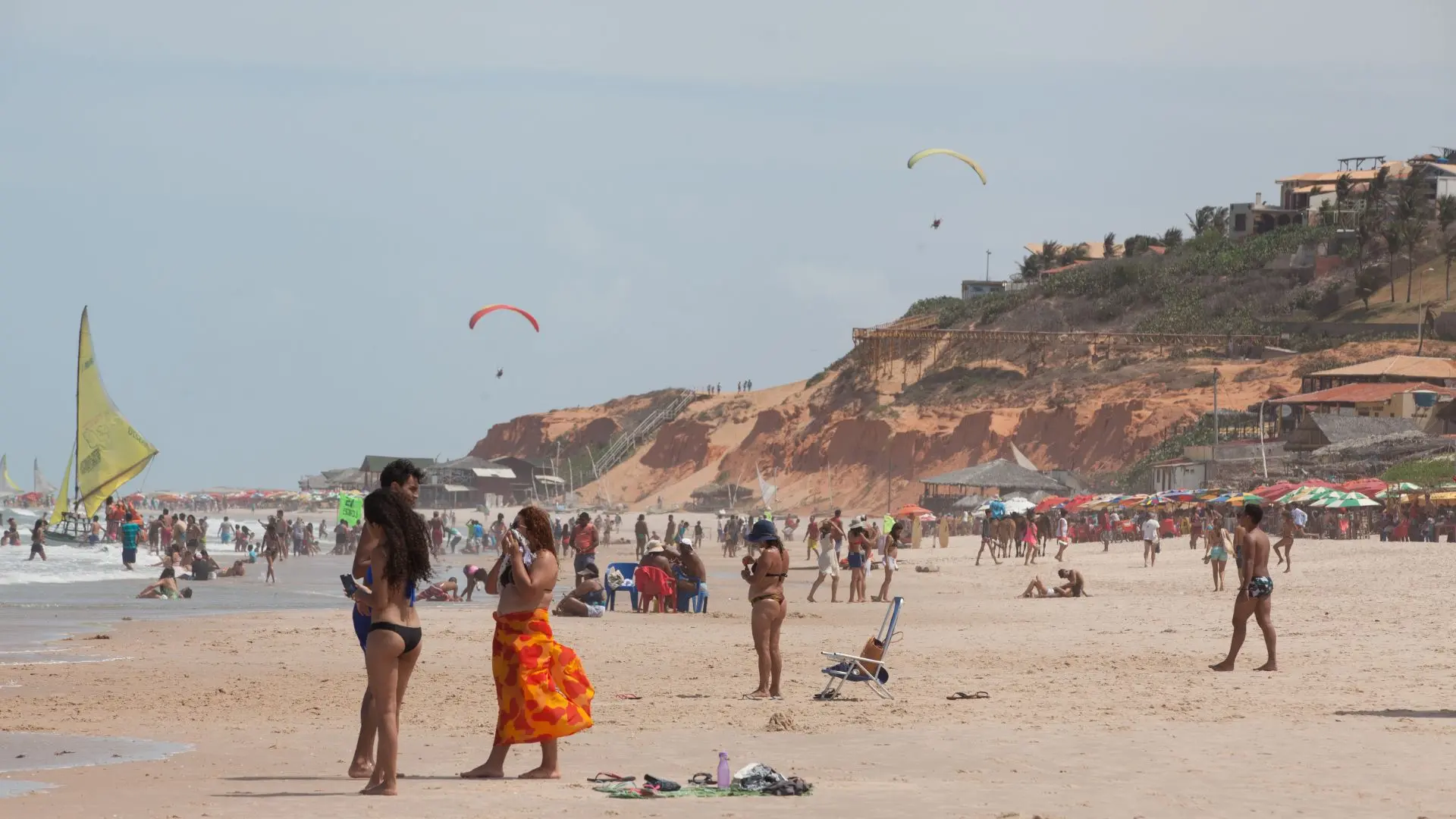 Situada no Ceará, a praia de Canoa Quebrada tem uma paisagem caracterizada por dunas e falésias avermelhadas. Com uma atmosfera vibrante e belezas naturais, o local atrai cearenses e turistas de todo o País.