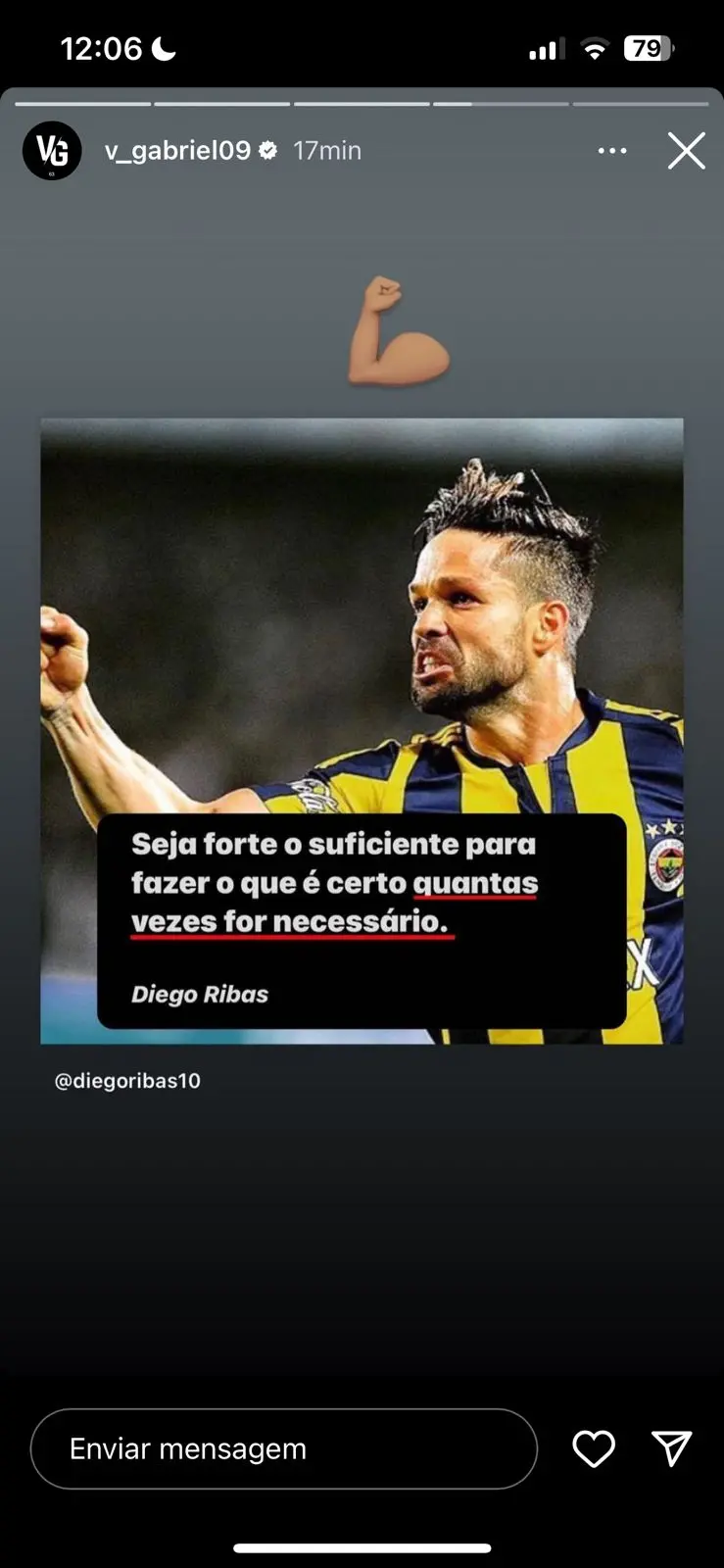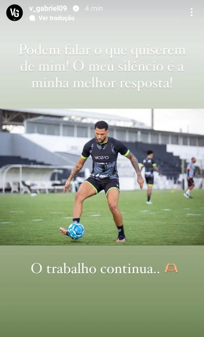 Após essa primeira publicação, o jogador voltou a postar nas redes sociais, dessa vez uma frase que havia sido publicada pelo ex-jogador do Flamengo, Diego Ribas, e repostada por Vitor Gabriel em seus stories no Instagram.