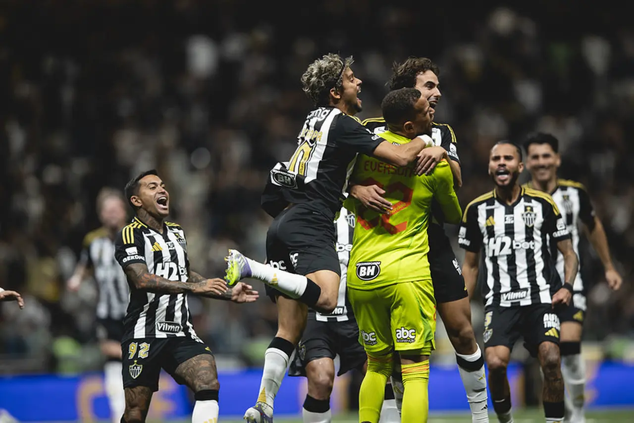 Nas cobranças, Arrascaeta abriu acertando para o Flamengo, Hulk empatou, Jorginho também acertou, Scarpa fez o dele, assim como Saúl, que viu Rossi pegar a batida de Júnior Alonso. Entretanto, a torcida do Atlético voltou a celebrar na batida seguinte, quando Everson defendeu a tentativa de Samuel Lino e Igor Gomes novamente deixou tudo igual. O cenário ficou ainda mais feliz para o time mineiro quando Wallace Yan isolou a quinta cobrança e Everson, como um herói, garantiu a vaga à próxima fase.