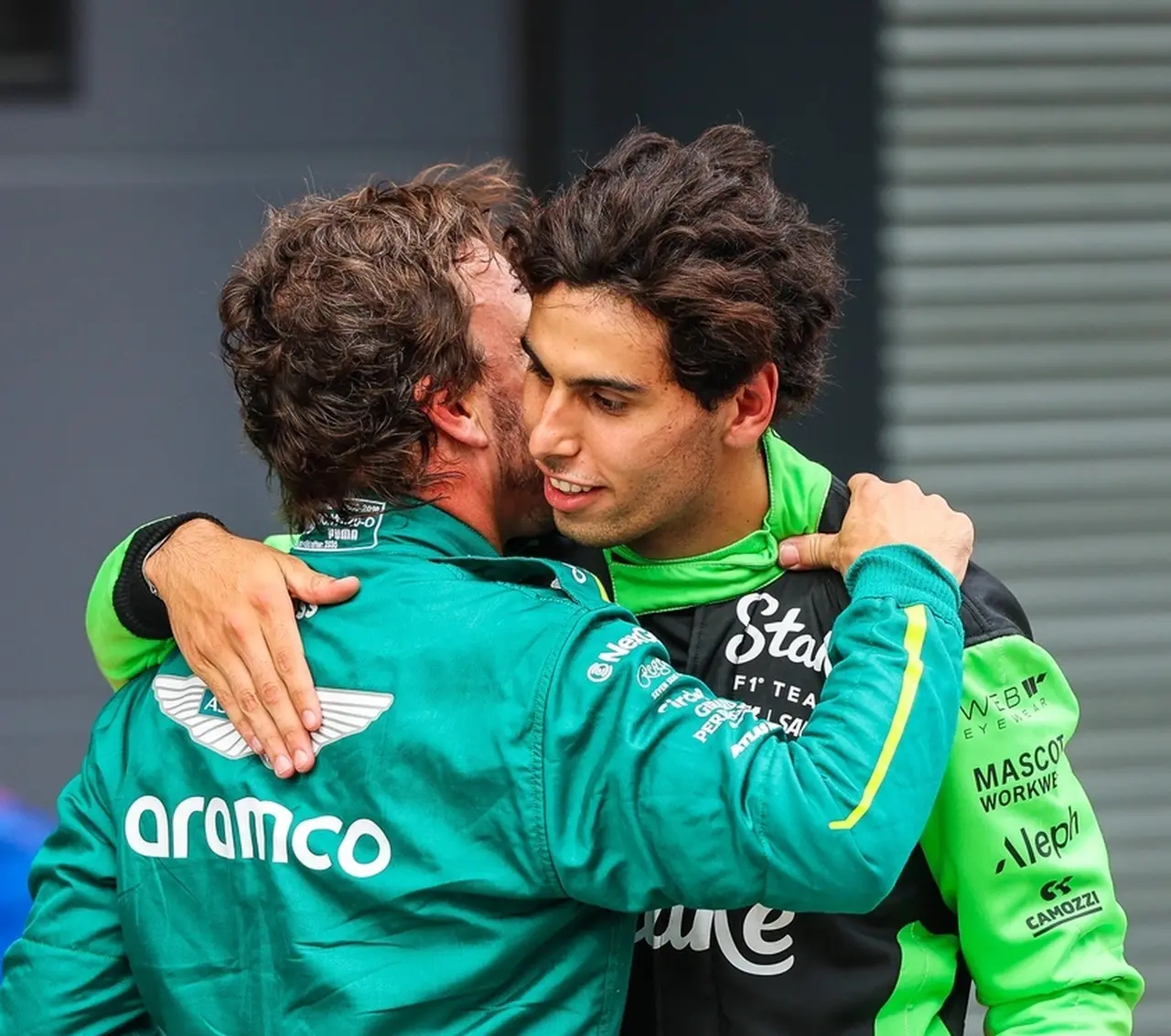 Bortoletto recebe abraço de Fernando Alonso, seu mentor de carreira, após o 6º lugar na Hungria; os dois disputaram posições na corrida