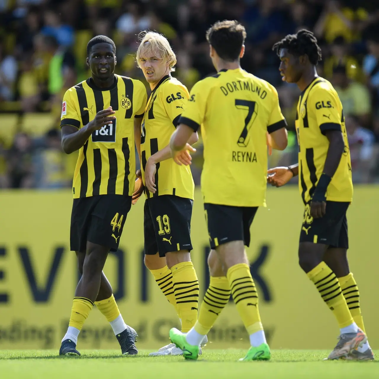 Kobel; Meunier, Hummels, Schlotterbeck e Guerreiro; Dahoud, Bellingham, Malen, Reus e Adeyemi; Moukoko. Técnico: Edin Terzic