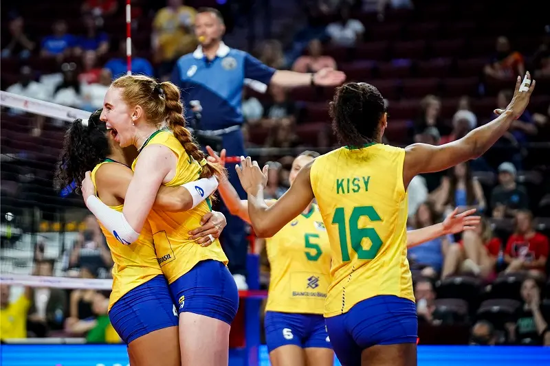 A seleção brasileira feminina de vôlei estreou com vitória na Liga das Nações 2022. Julia Bergamnn, de 21 anos, maior pontuadora do confronto, com 19 pontos, liderou o grupo. A equipe venceu a Alemanha por 3 sets a 1 (29/27, 23/25, 27/25 e 25/21), nesta terça-feira (31). O duelo ocorreu nos Estados Unidos.