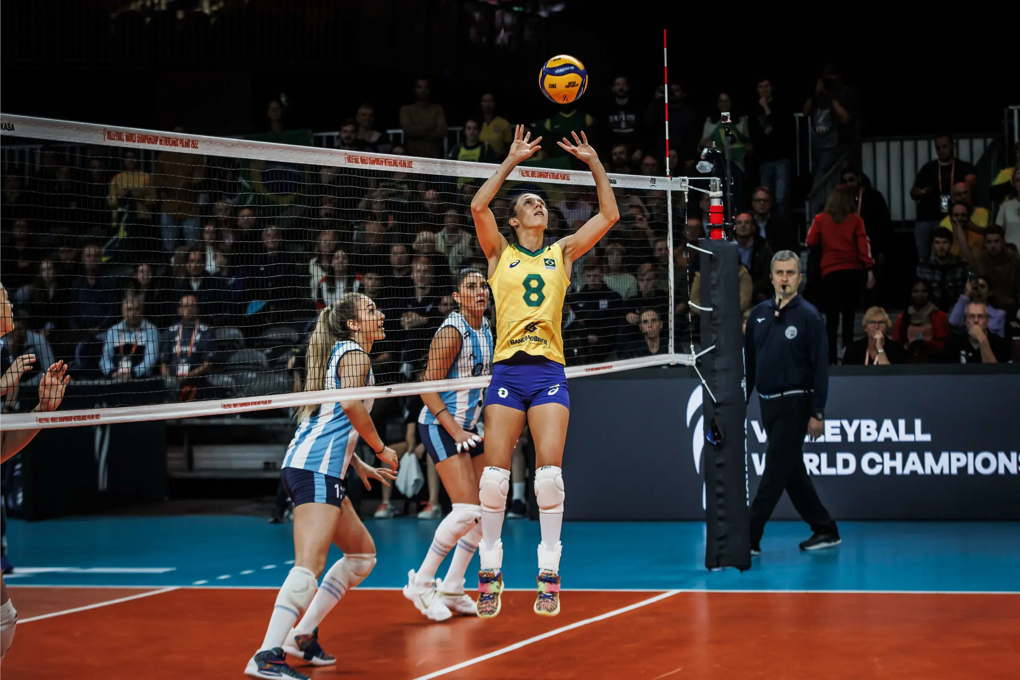 O Brasil venceu a Argentina nesta segunda-feira (26) por 3 sets a 0, com parciais de 25/19, 25/13 e 25/21, no Ginásio GelreDome, em Arnhem, na Holanda, pela 2ª rodada do Campeonato Mundial de Vôlei feminino.