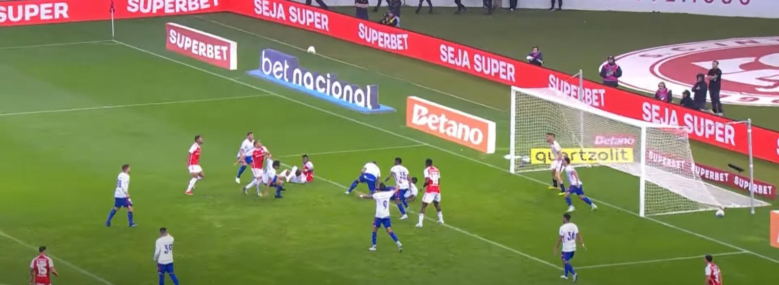 No lance em questão, Brítez e Mercado, zagueiro do Internacional, disputam espaço na grande área do Fortaleza, quando o defensor do Tricolor do Pici vai ao chão e pede falta. O árbitro mandou o jogo seguir, e na sequência do lance o Internacional marcou o gol.