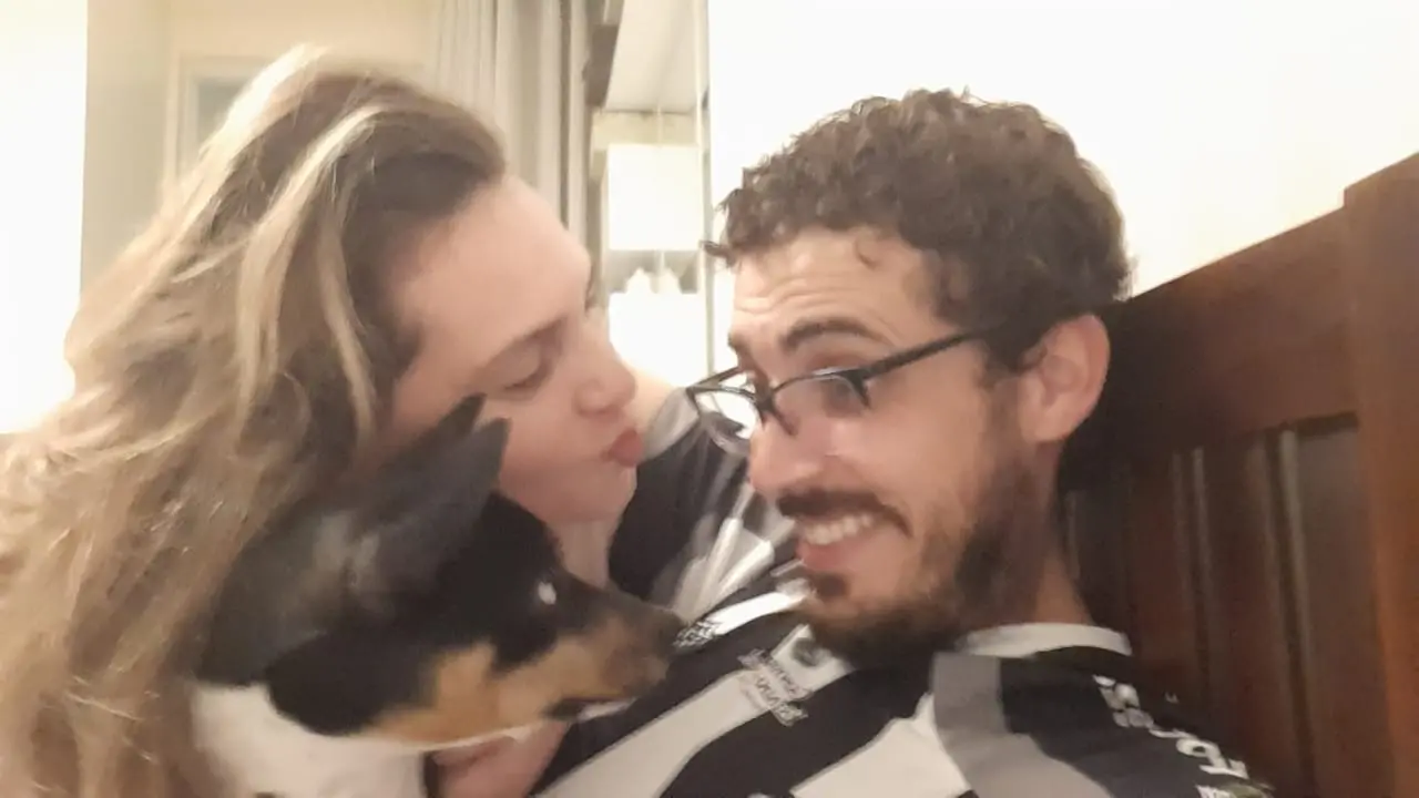 A cada gol, um latido. Dos gritos eufóricos de vibração, uivos ao lado. Assim foi a comemoração na família alvinegra de Caique Campelo, servidor público federal, com o cachorro Toby durante vitória do Ceará contra o Flamengo neste domingo (10).