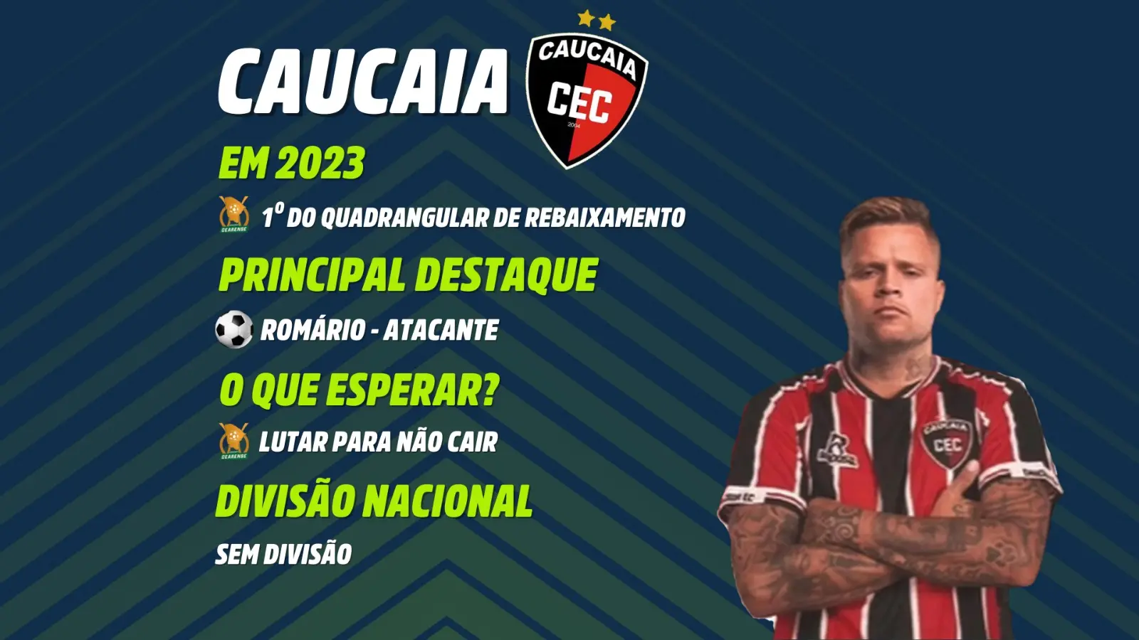 O Caucaia é um dos times da Região Metropolitana que integram o Campeonato Cearense de 2024. Fundado em 16 de abril de 2004, o clube vai para a sua quinta temporada seguida na elite estadual. A melhor campanha aconteceu em 2022, quando a equipe foi vice-campeã depois de perder a final para o Fortaleza.