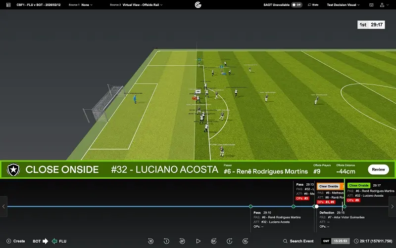 A primeira fase de testes do impedimento semiautomático foi realizada. A CBF e a Genius Sports conduziram os trabalhos no Maracanã durante a partida entre Fluminense e Botafogo, no dia 12 de fevereiro, pelo Brasileiro. O equipamento confirmou os acertos das decisões da arbitragem em campo. A Arena do Grêmio, a Arena MRV, o Allianz Parque, o Maião, a Arena Fonte Nova e a Vila Belmiro serão os próximos estádios a receber os testes.
