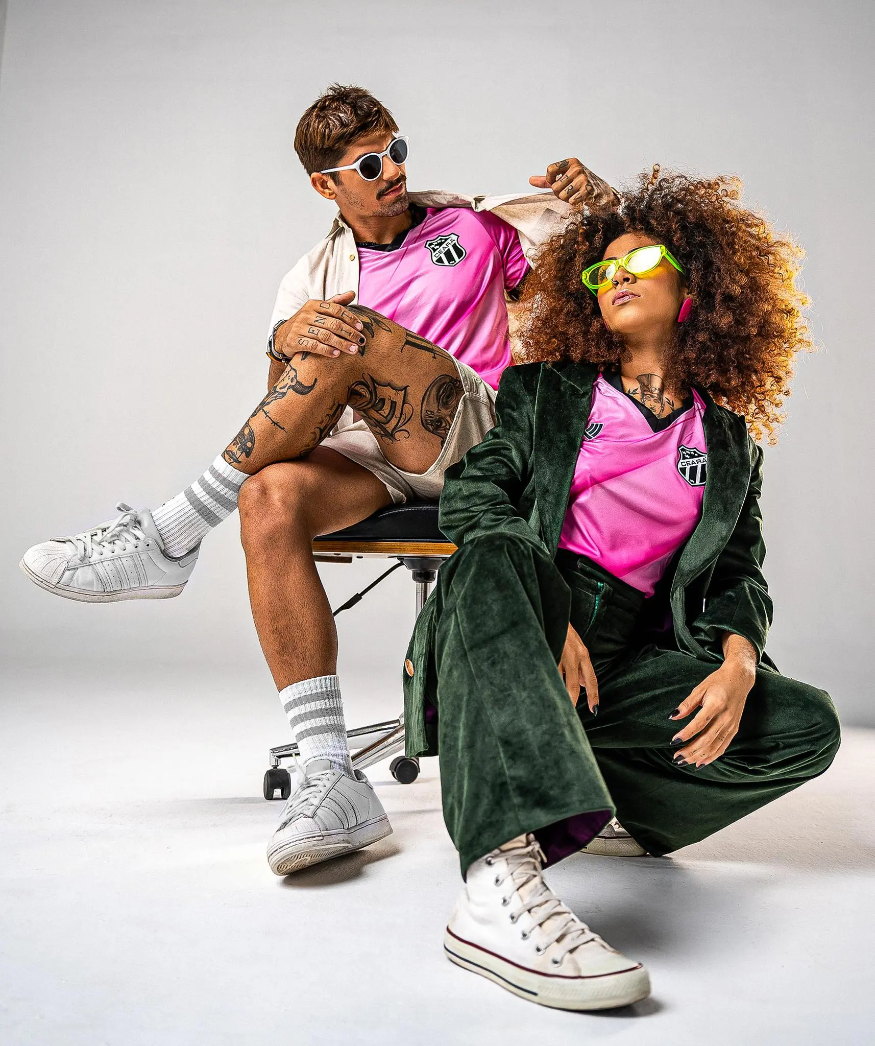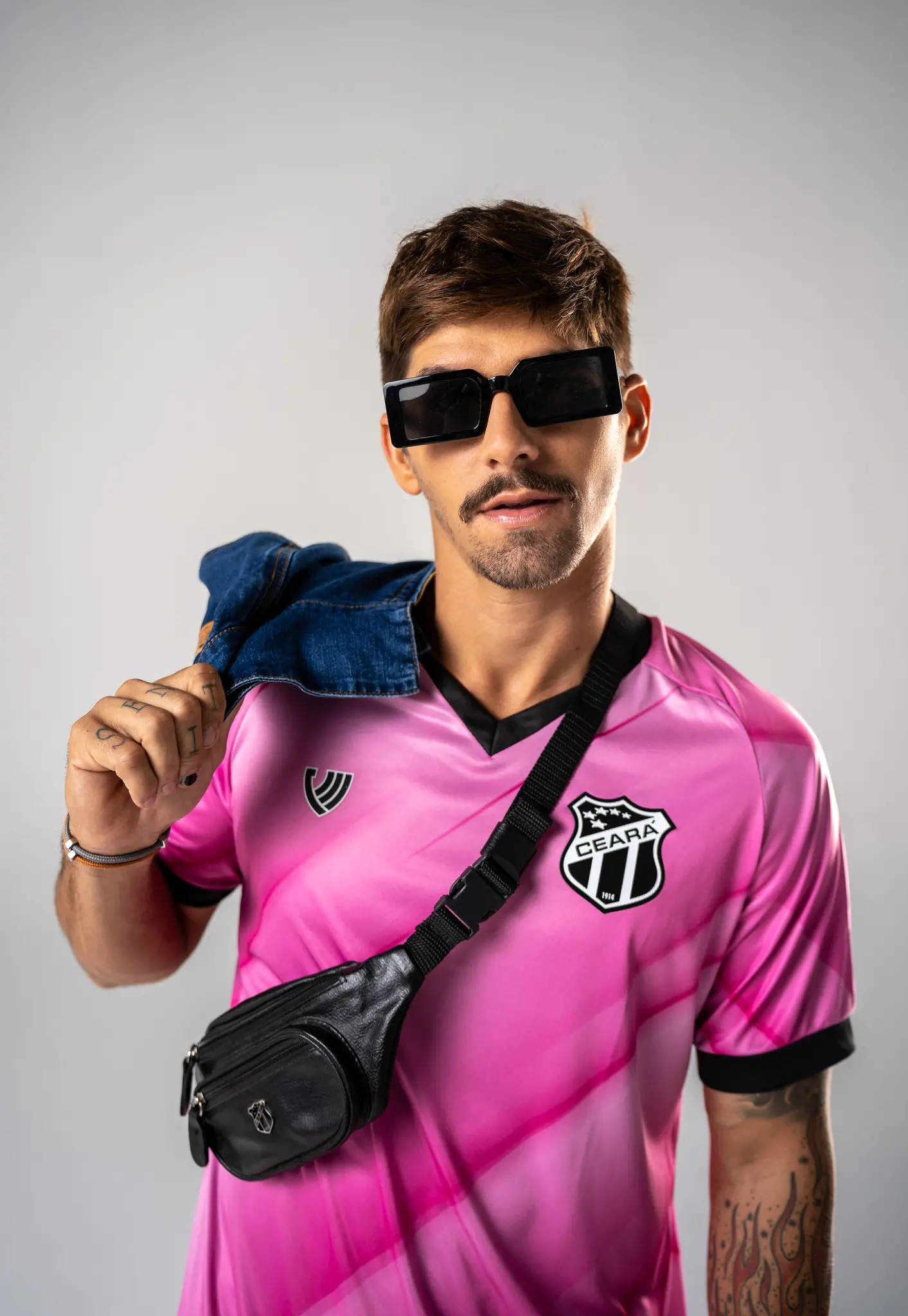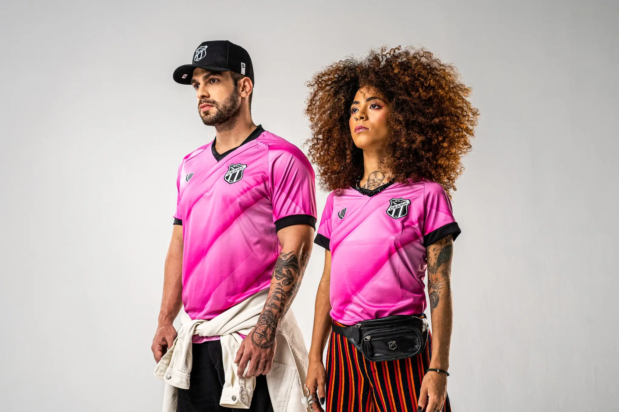 O Ceará divulgou imagens nesta sexta-feira (30) do uniforme em homenagem ao Outubro Rosa. A camisa tem cor rosa, com detalhes pretos na gola e nas mangas, além de listras suaves.