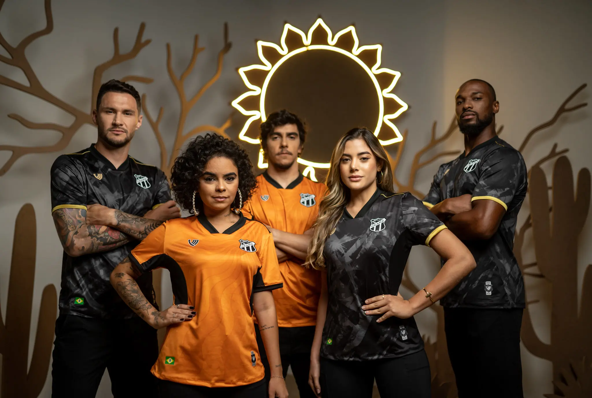 A camisa de linha tem o preto predominante, com detalhes dourados, em alusão ao sol. O de goleiro tem o laranja como característico, fazendo alusão à luz solar.