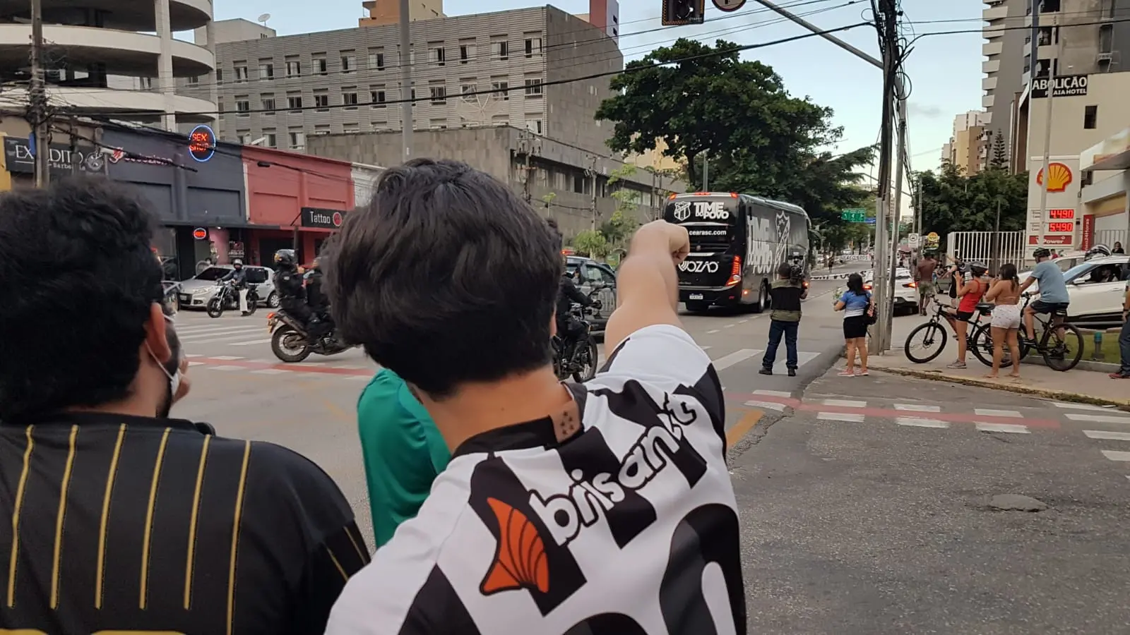 A torcida do @CearaSC não pode entrar na Arena Castelão, por conta do protocolo de Covid-19, mas apoio não falta no caminho do elenco até o estádio.