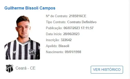 O atacante Bissoli, contratado pelo Ceará vindo do Athletico/PR, já está regularizado e pode estrear pelo Vovô. Ele teve seu nome publicado no BID da CBF nesta quinta-feira (6).