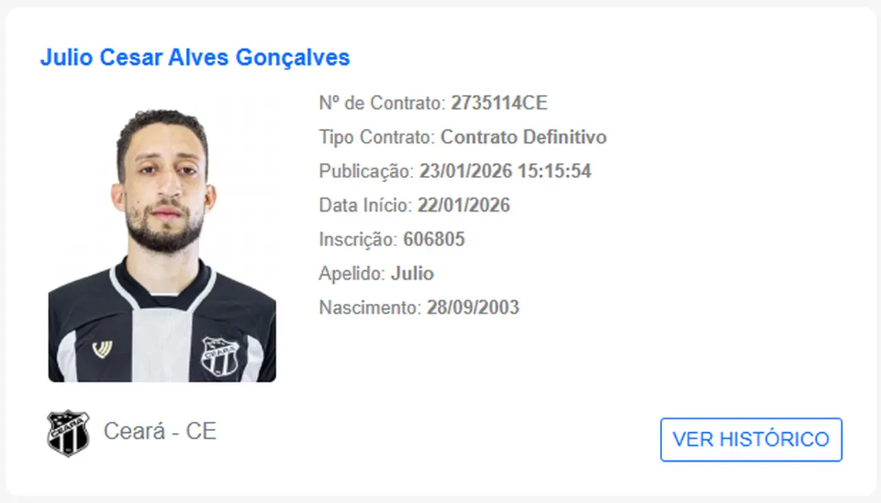O zagueiro Júlio César foi regularizado nesta sexta-feira (23) e poderá fazer sua estreia pelo Ceará contra o Ferroviário. O Alvinegro joga no domingo (25), às 18 horas no Presidente Vargas, pela 1ª rodada da 2ª Fase.