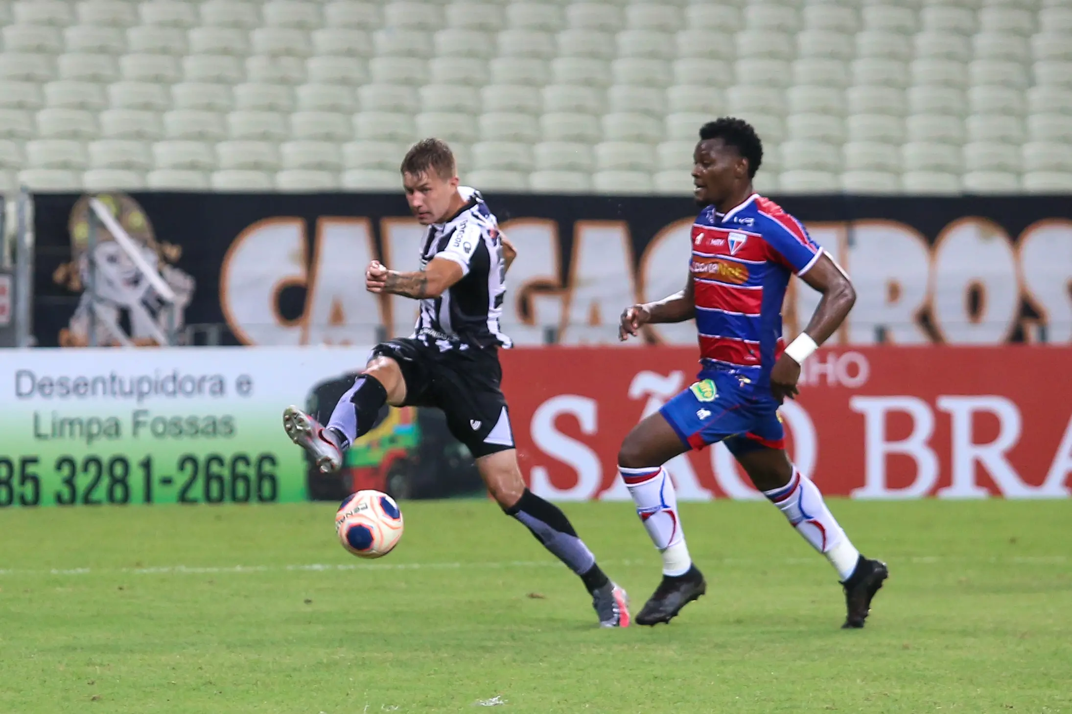 Nos acréscimos da etapa inicial, o atacante Rick teve rara chance em contragolpe após escanteio do Fortaleza. O jovem de 20 anos arrancou pelo meio de campo acompanhado de Vina pela direita, mas Osvaldo ganhou na corrida e desarmou o atleta no que seria clara situação de gol.