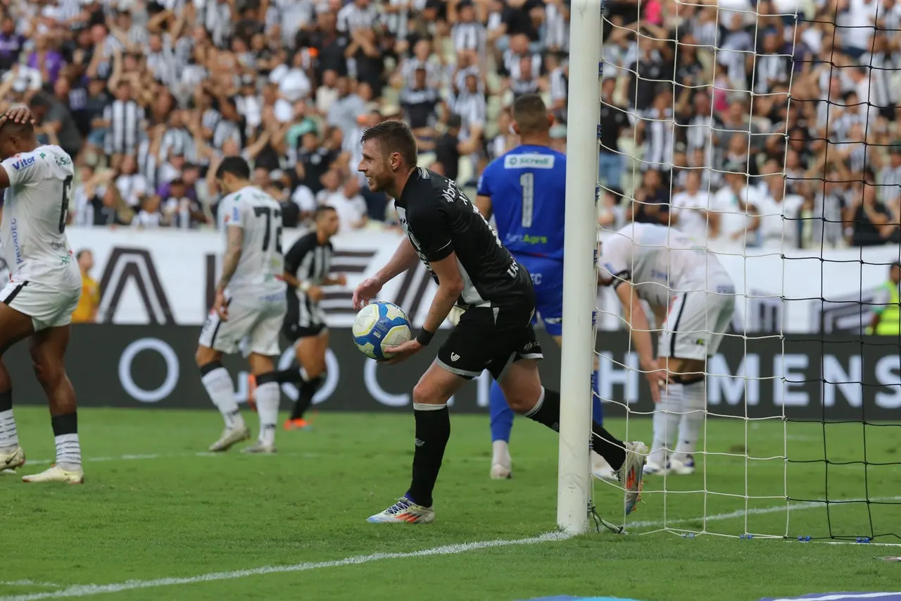 Mas no lance seguinte, o Vozão ampliou: Lucas Rian cruzou fechado, Erick Pulga cabeceou e encobriu o goleiro: 2 a 0.