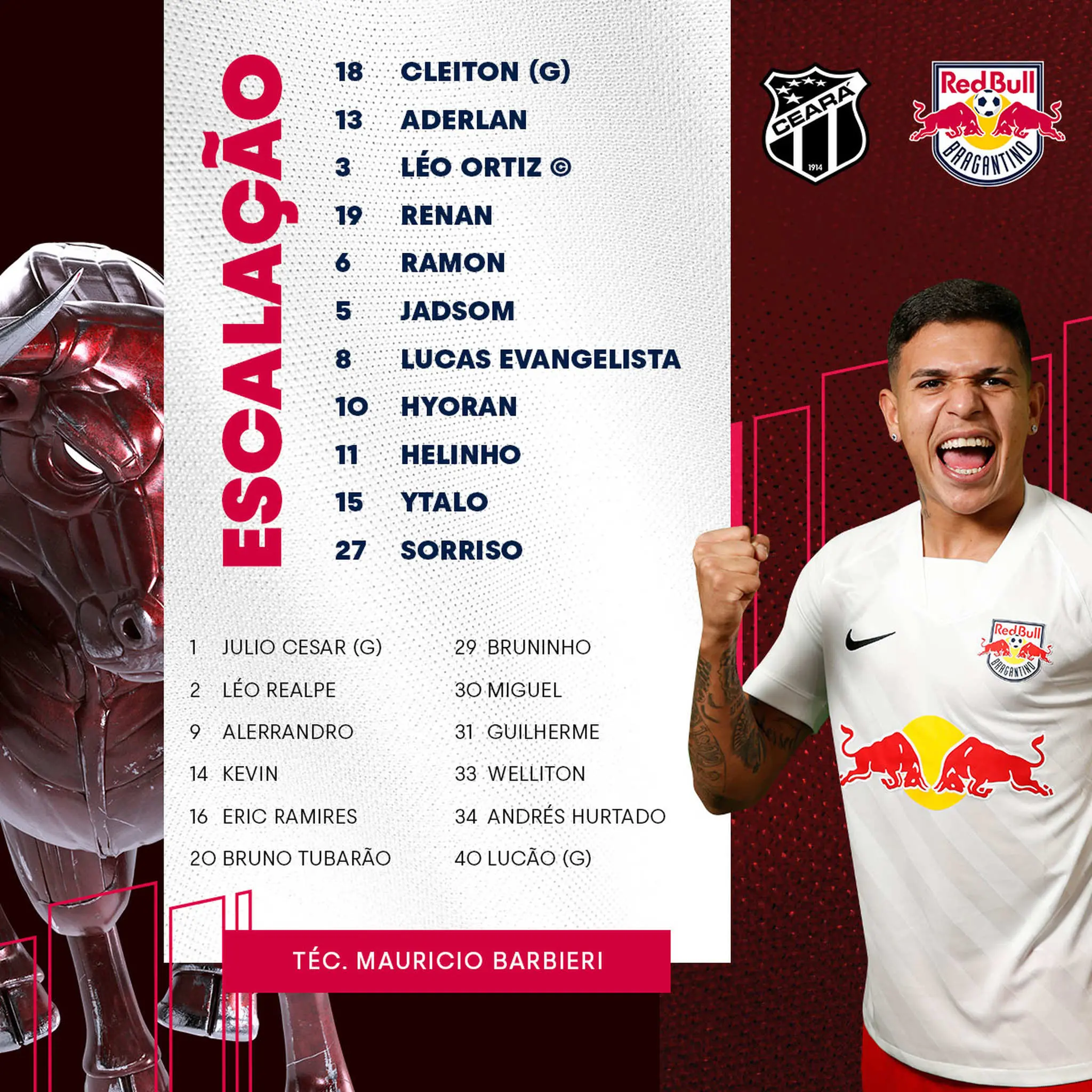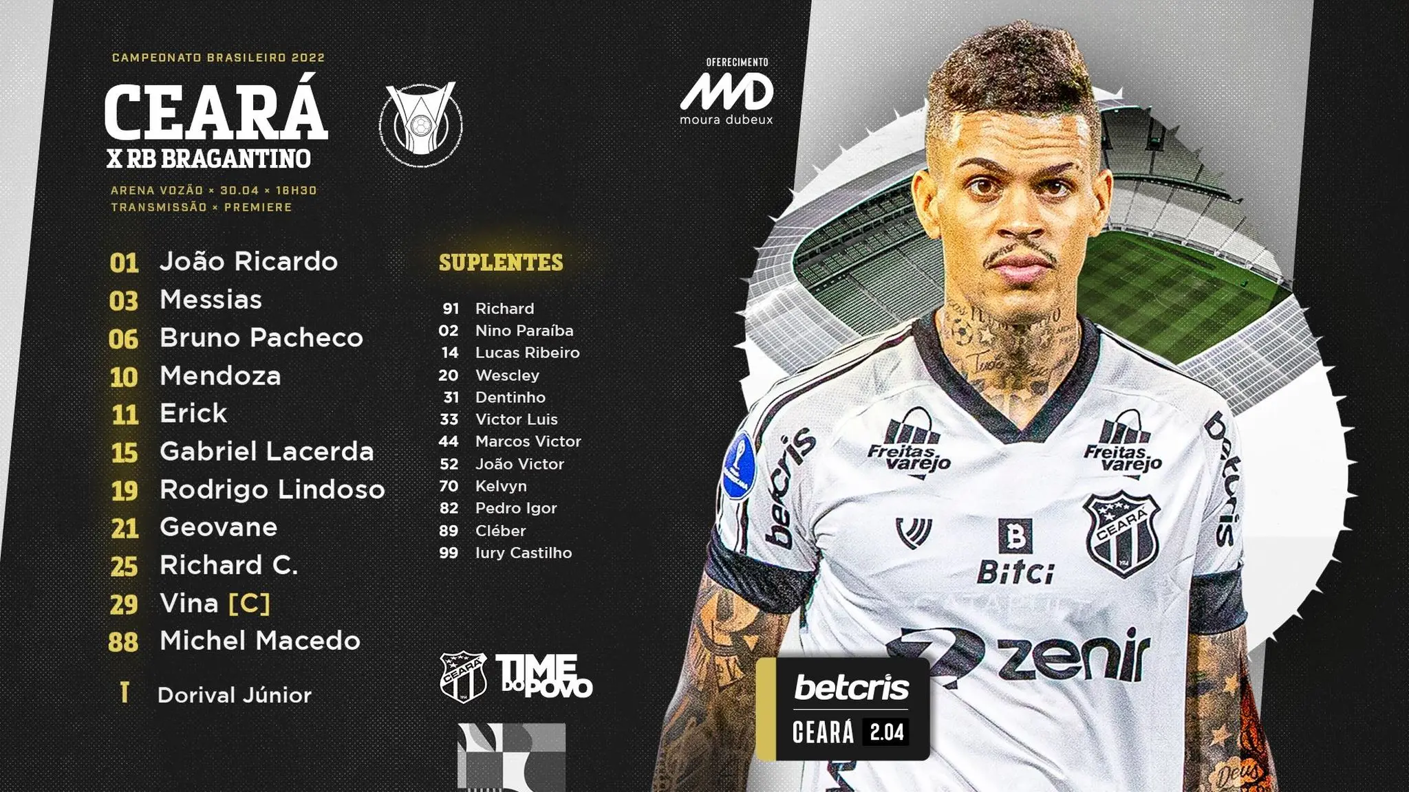 Para a partida, o técnico paulista manteve o time-base que representa o Alvinegro de Porangabuçu nas competições nacionais e internacionais. Confira abaixo as escalações de Ceará x RB Bragantino.