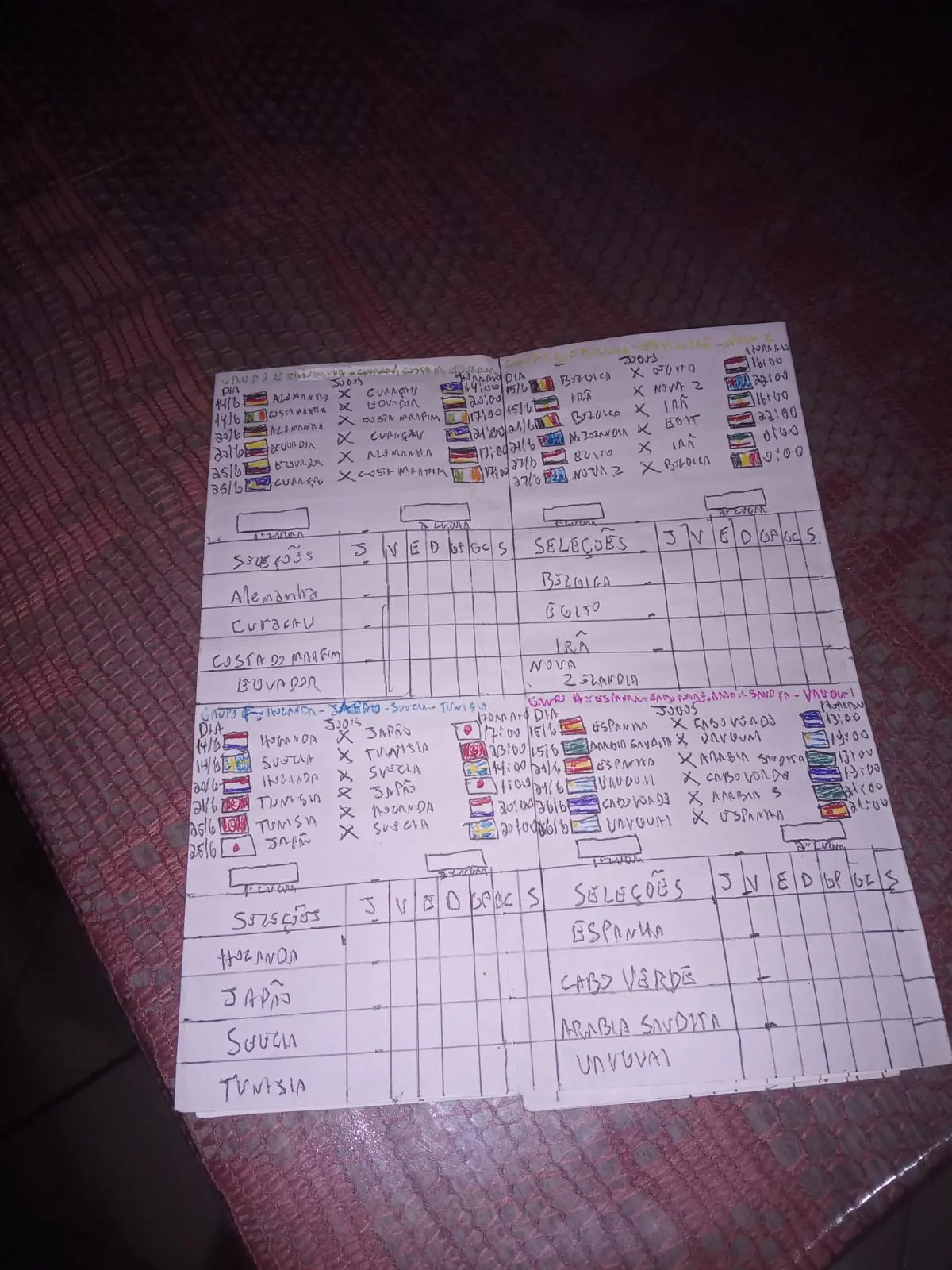 "Desde a Copa do Mundo de 1994 eu conseguia tabelas para guardar os jogos. Em 2006 foi o ano que consegui mais: foram 20 tabelas. A partir de 2014 foi diminuindo mais. Em 2018, só consegui duas. Mas em 2022, na última Copa, a uma semana do início, não tinha nada. Fui à internet, peguei a tabela, e fiz uma manualmente para mim".
