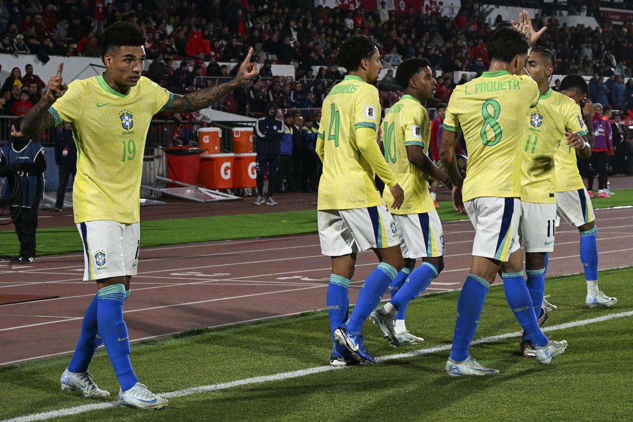 O Brasil venceu o Chile por 2 a 1, de virada, em Santiago, no Chile, nesta quinta-feira (10), em jogo pela 9ª rodada das Eliminatórias Sul-Americanas para a Copa do Mundo de 2026. Os gols da Seleção Brasileira foram marcados por dois jogadores do Botafogo: Igor Jesus (aos 46 do 1º tempo) e Luiz Henrique (aos 43 do 2 tempo). O gol do Chile foi de Eduardo Vargas, com 1 minuto de jogo.