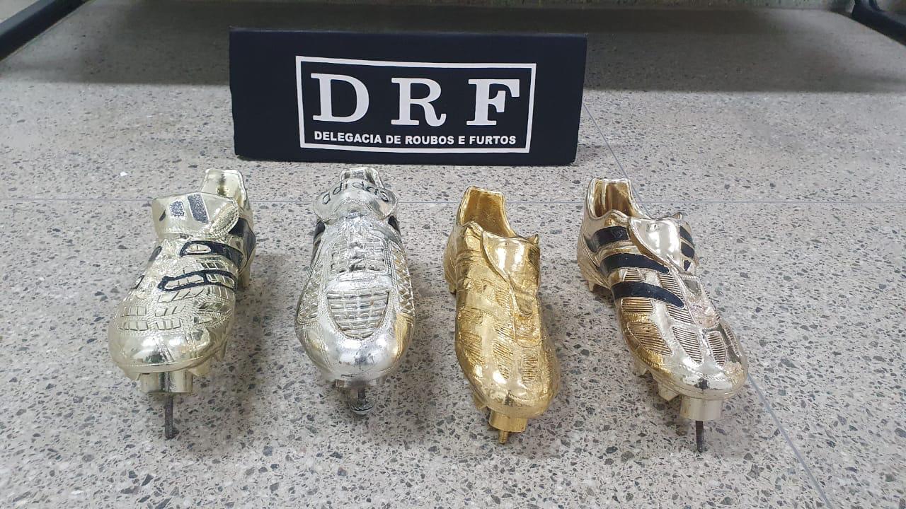 Jardel relatou à reportagem que os policiais o informaram que a trava de uma das chuteiras de ouro foi retirada. O cearense disse ainda que as bases dos prêmios foram quebradas.
