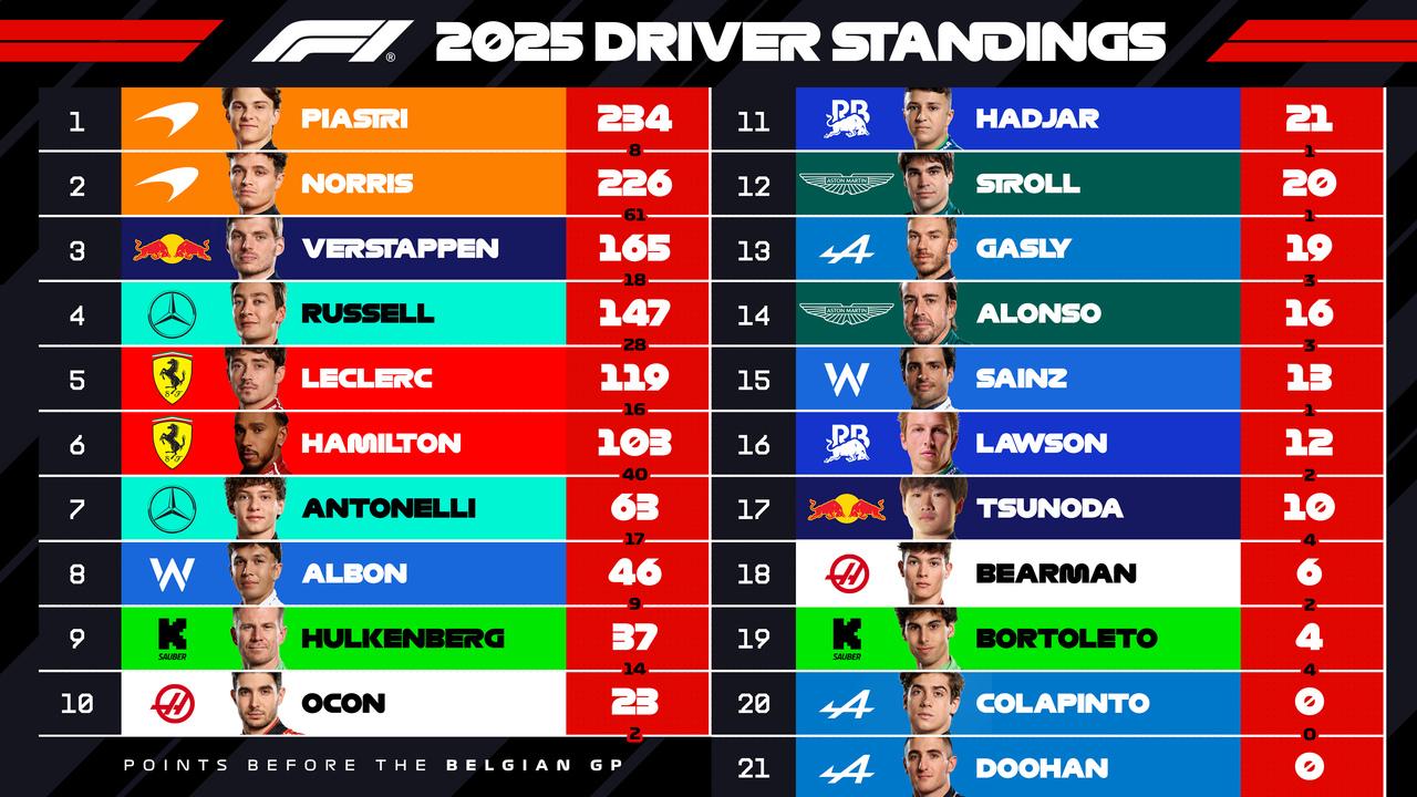 Classificação do GP da Bélgica na F1: horário e onde assistir ao vivo neste sábado (26)