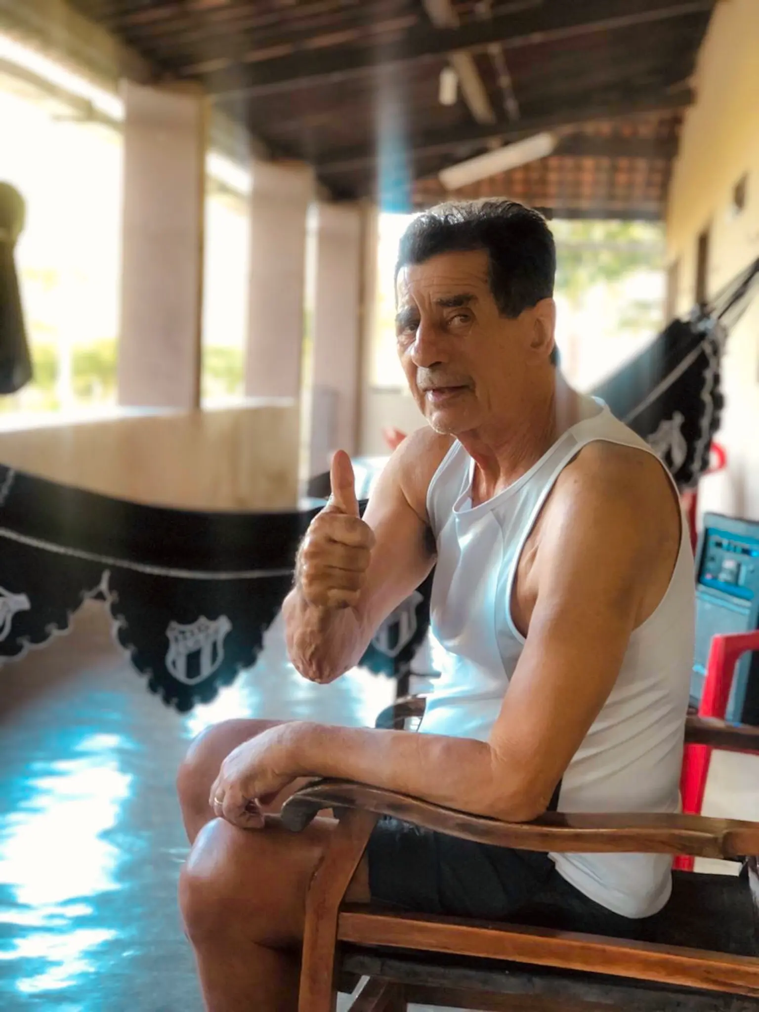 "Antes da pandemia estava super ativo, indo para o Colosso no projeto. Com a pandemia, foi para a fazenda Itapajé, no interior da minha mãe. E foi bom para ele porque andava muito, tendo contato com animais. Quando vim para Fortaleza em julho, vi que ele deu uma decaída por ficar casa sem fazer exercícios. Ele fazia fisioterapia e teve que parar por medo da Covid-19. Ele hoje dorme mais do que faz outras coisas", conta a filha do Soldado.