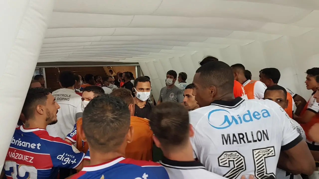Confusão: atletas de Fortaleza e Corinthians se estranham na Arena Castelão; vídeo