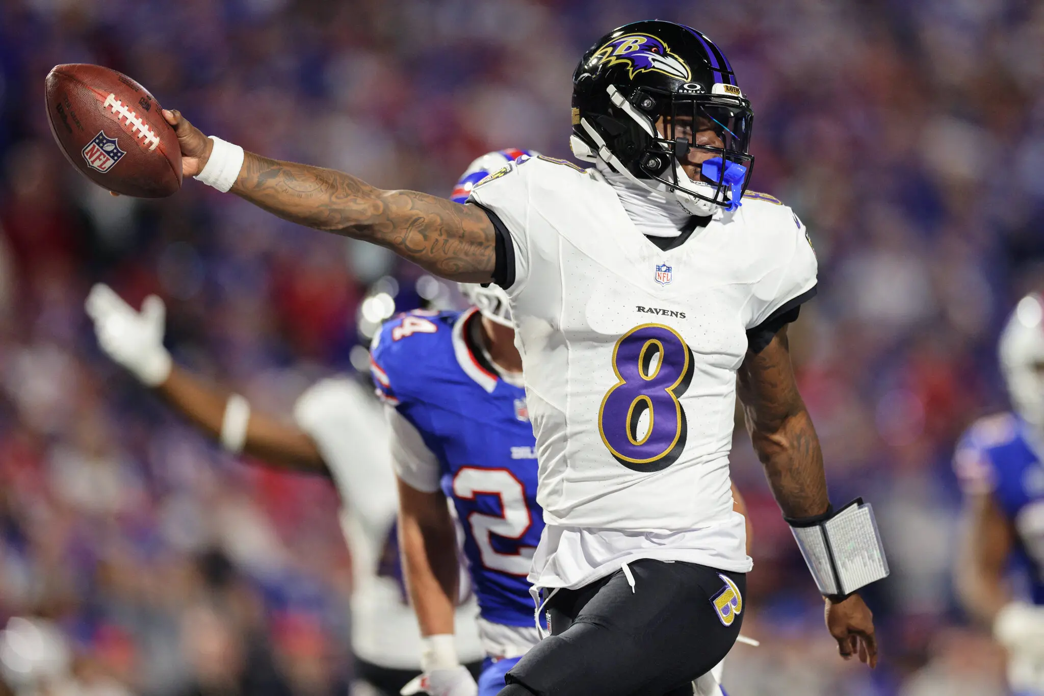 Ainda nesta situação, Lamar Jackson, quarterback do Baltimore Ravens, deu um empurrão no torcedor do Buffalo Bills que o deu um tapa. Após o caso, o jogador pediu desculpas ao torcedor na coletiva de imprensa após a partida.