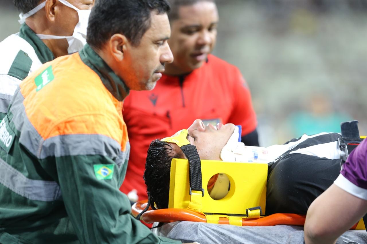 Ele foi imobilizado pelos médicos do Ceará ainda no gramado e deixou o estádio de ambulância.
