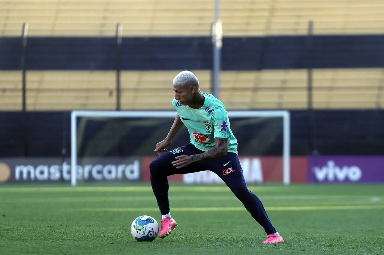Richarlison vive jejum de gols pela seleção neste ano, ainda sem balançar as redes tanto em amistosos quanto em jogos das Eliminatórias. Longe de agradar nas últimas partidas, o atacante pode começar o jogo de terça no banco de reservas. Gabriel Jesus treinou em seu lugar neste domingo, no estádio Campeon Del Siglo, e pode estar entre os 11, formando trio de ataque com Rodrygo e Vinicius Júnior.