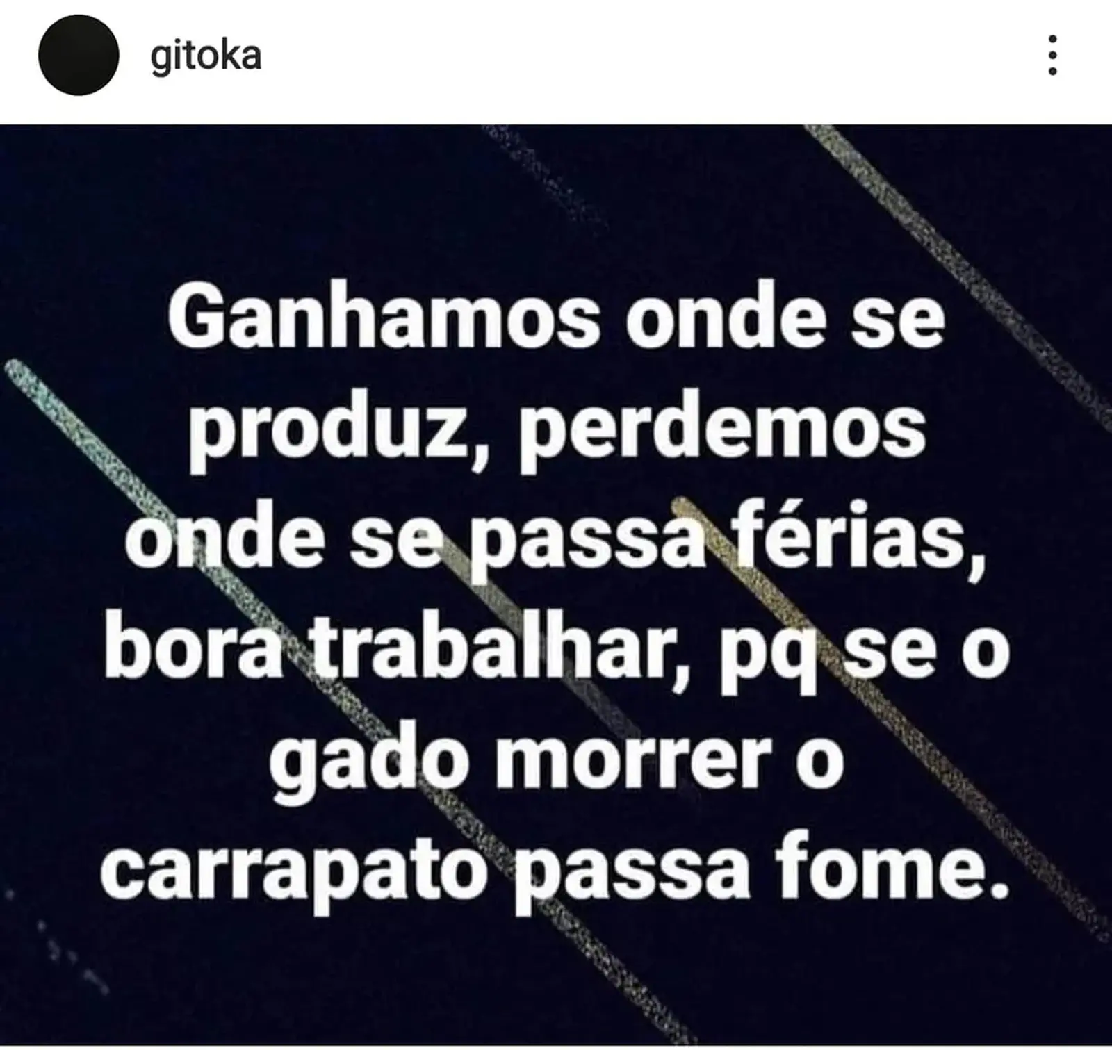 "Ganhamos onde se produz, perdemos onde se passa férias, bora trabalhar, pq (sic) se o gado morrer o carrapato passa fome", publicou no Instagram.